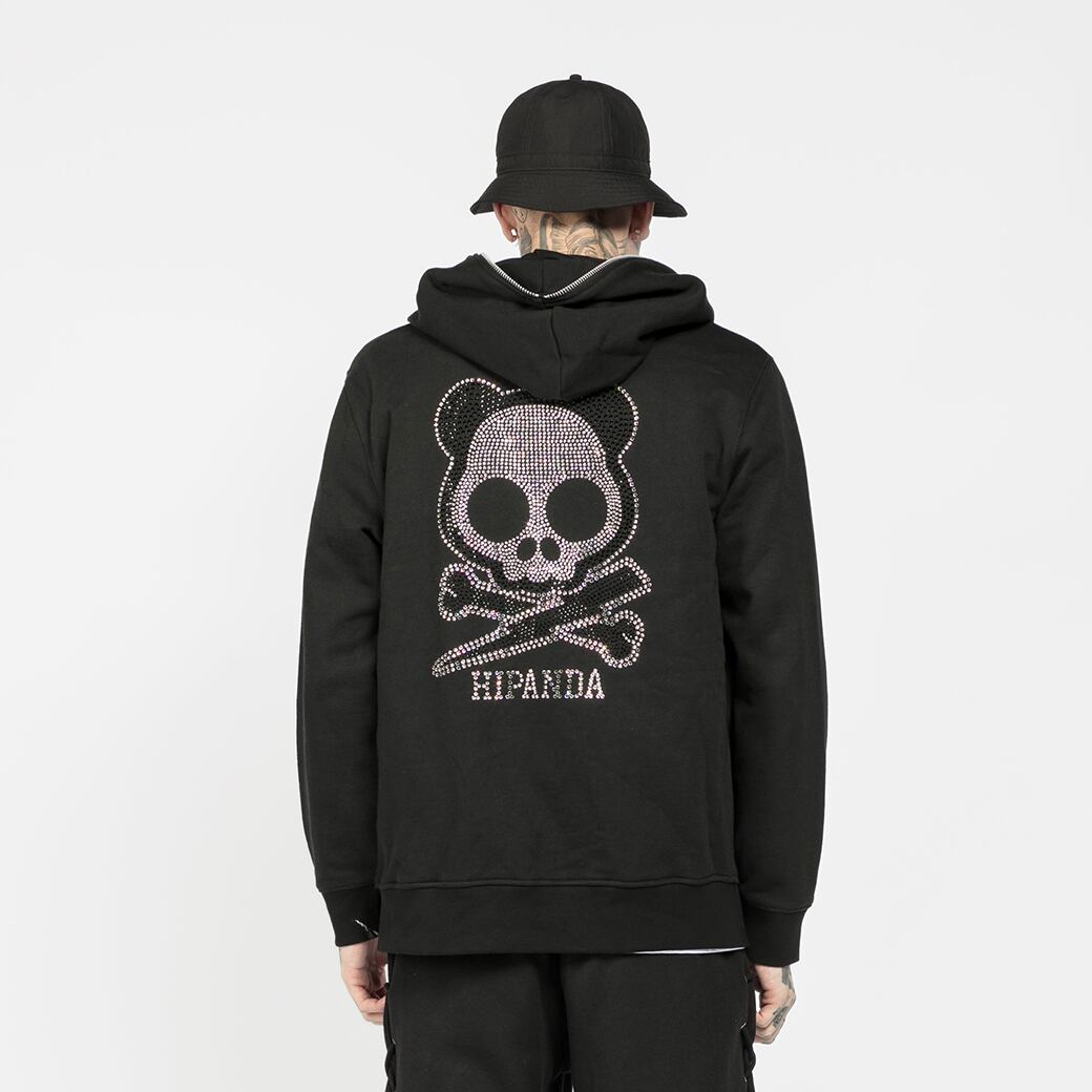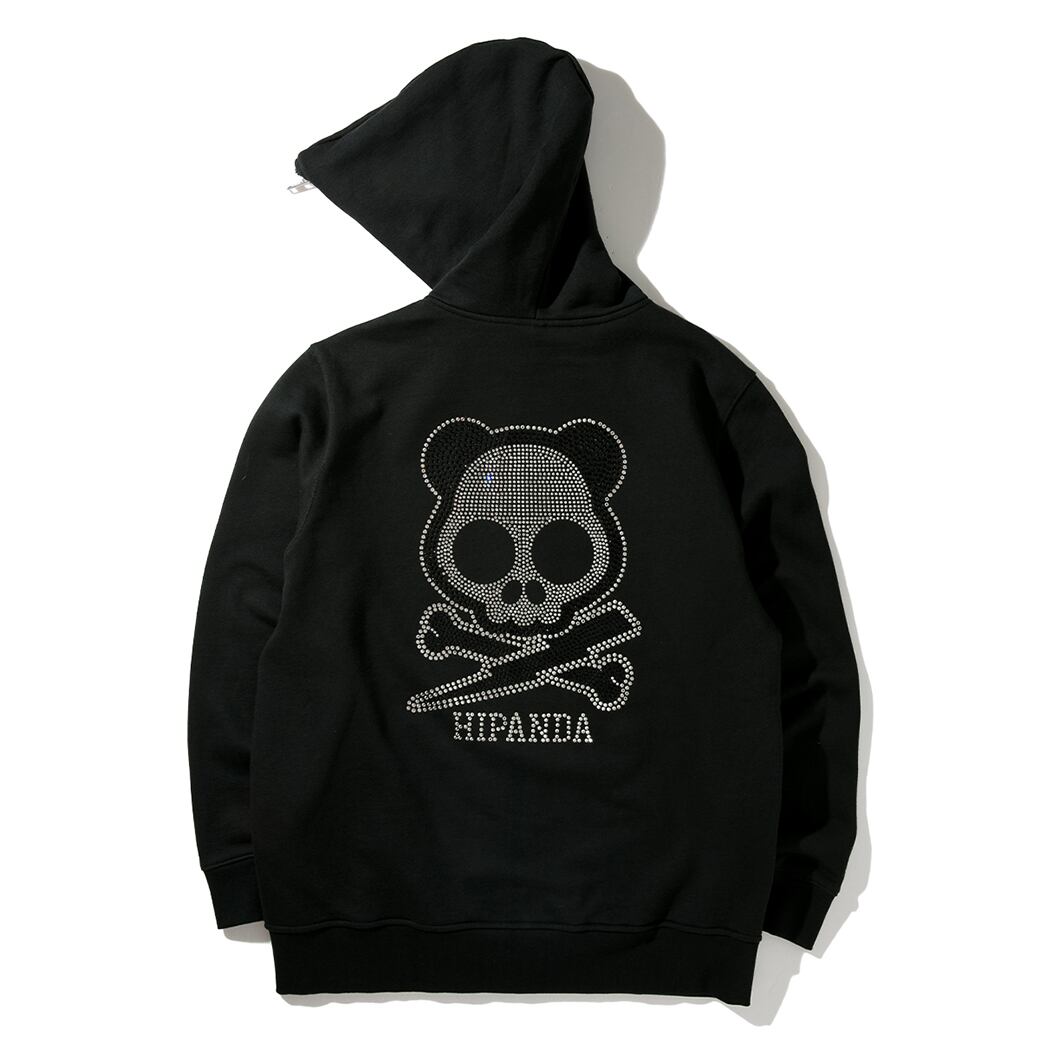 【HIPANDA 】1298/2304男女兼用 ラインストーン フーディー スウェット UNISEX RHINESTONE HOODIE SWEAT SHIRT / BLACK・BEIGE