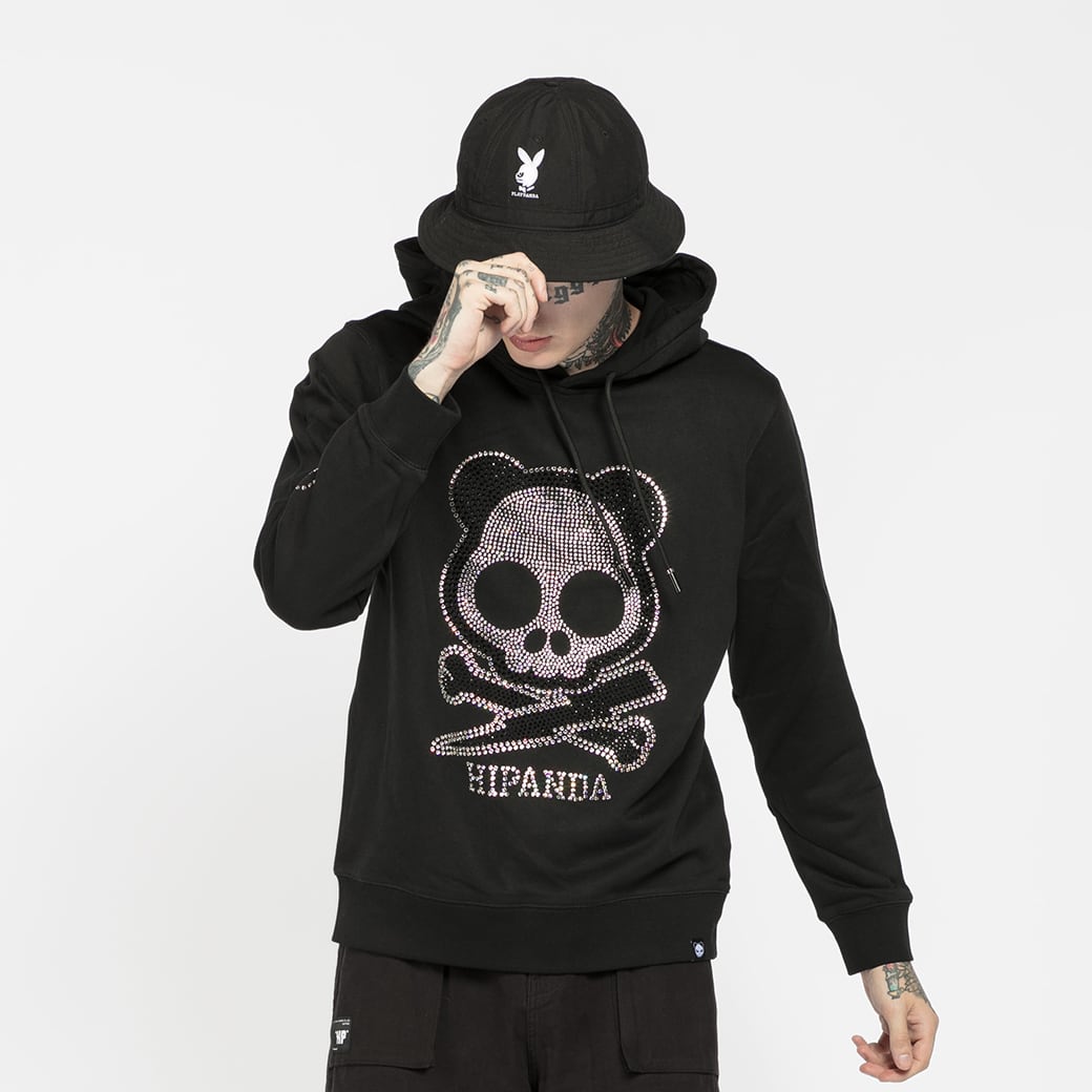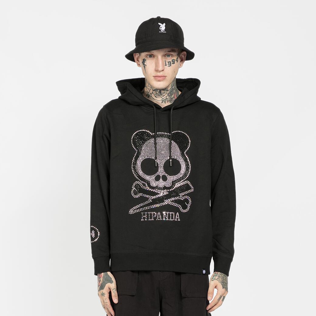 【HIPANDA 】1294/2300 ラインストーン フーディー スウェット RHINESTONE HOODIE SWEAT SHIRT / BLACK