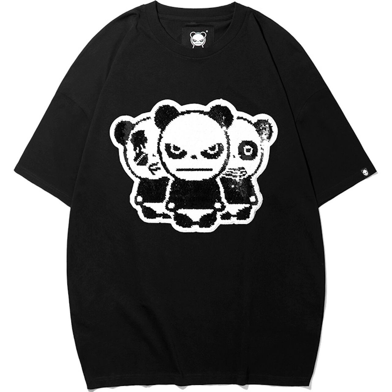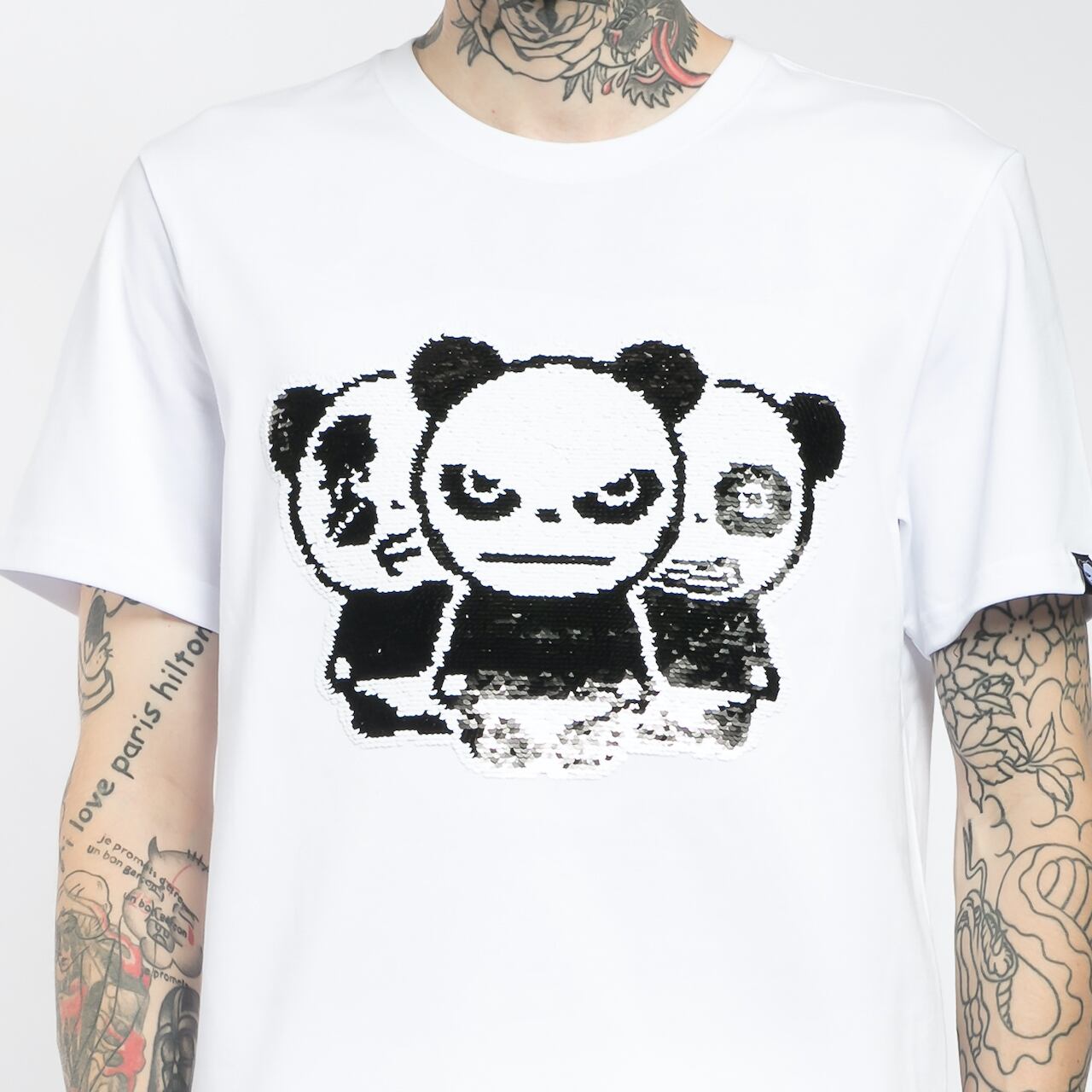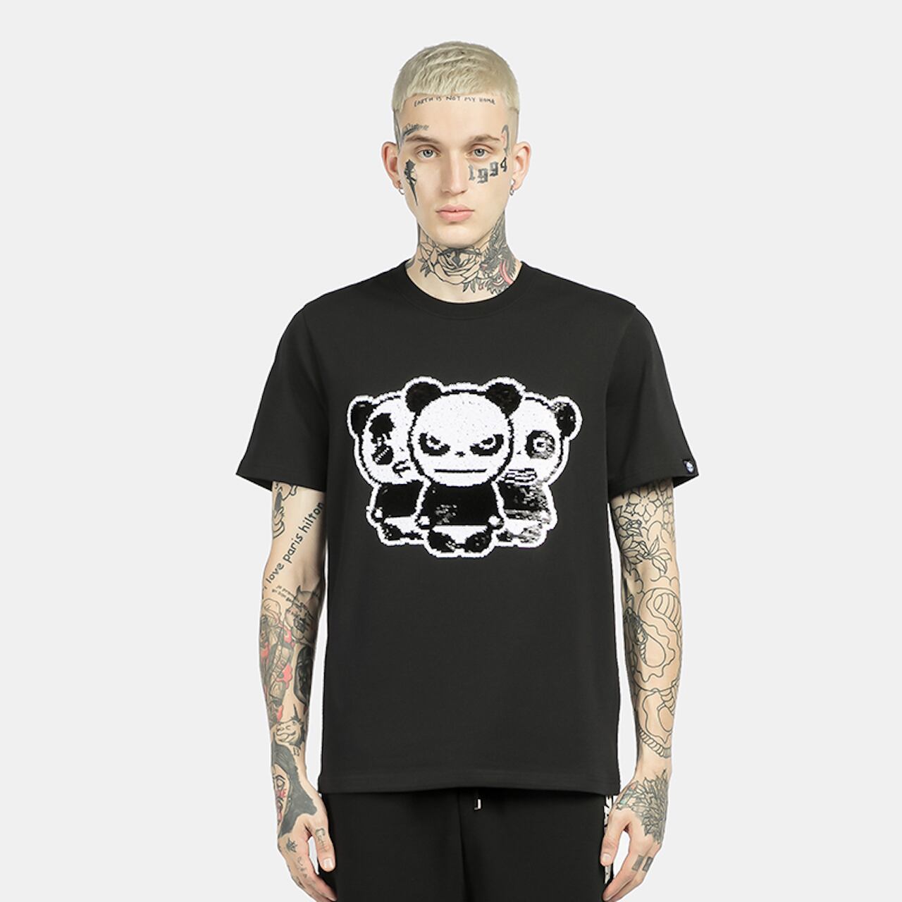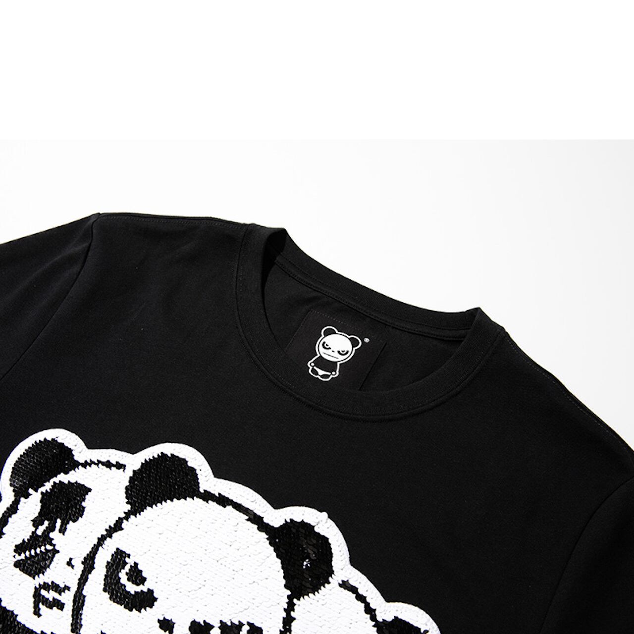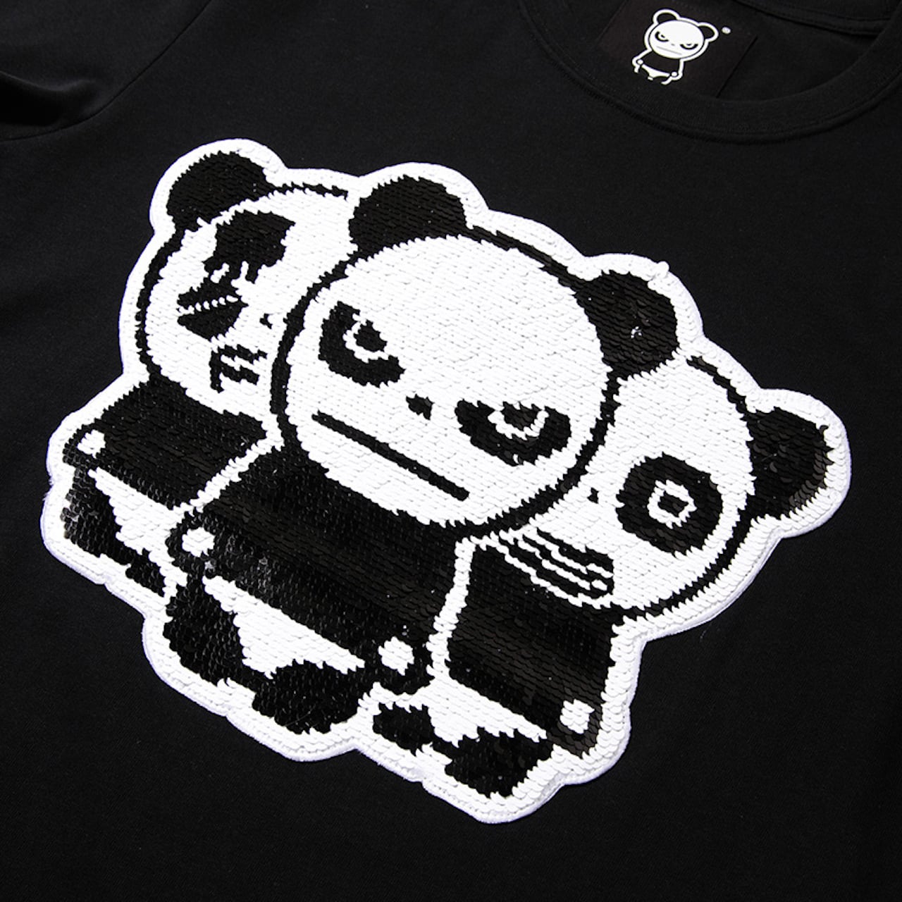 【HIPANDA ハイパンダ】メンズ パンダ3兄弟 スパンコール Tシャツ MEN'S TRIO LOGO SEQUINS SHORT SLEEVED T-SHIRT / WHITE・BLACK
