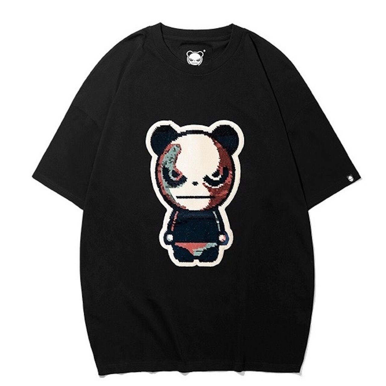【HIPANDA ハイパンダ】メンズ ゴッホカラー スパンコール Tシャツ MEN'S VAN GOGH SEQUINS EMBROIDERY SHORT SLEEVED T-SHIRT / WHITE・BLACK