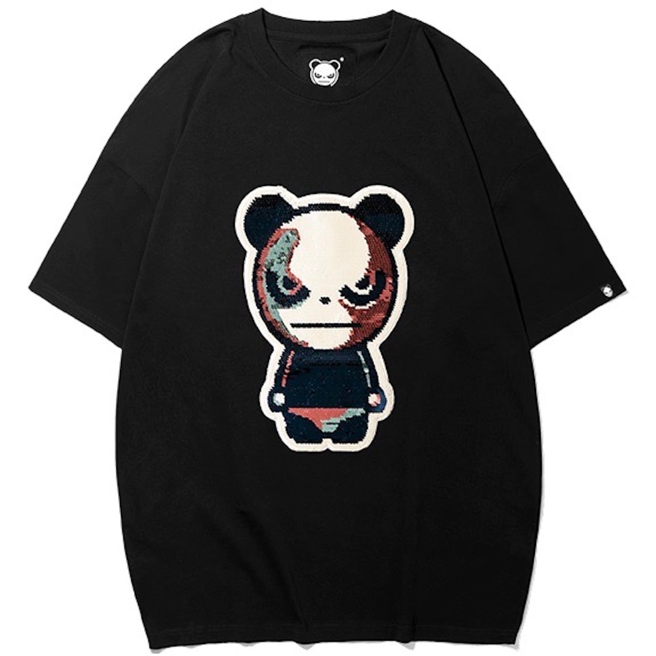 【HIPANDA ハイパンダ】レディース ゴッホカラー スパンコール Tシャツ WOMEN'S VAN GOGH SEQUINS EMBROIDERY SHORT SLEEVED T-SHIRT / WHITE・BLACK