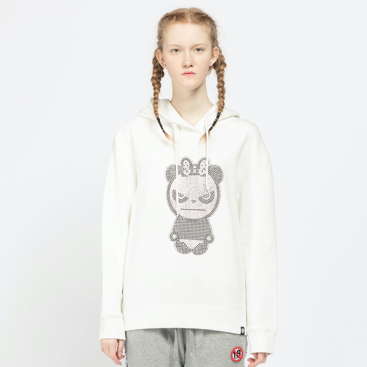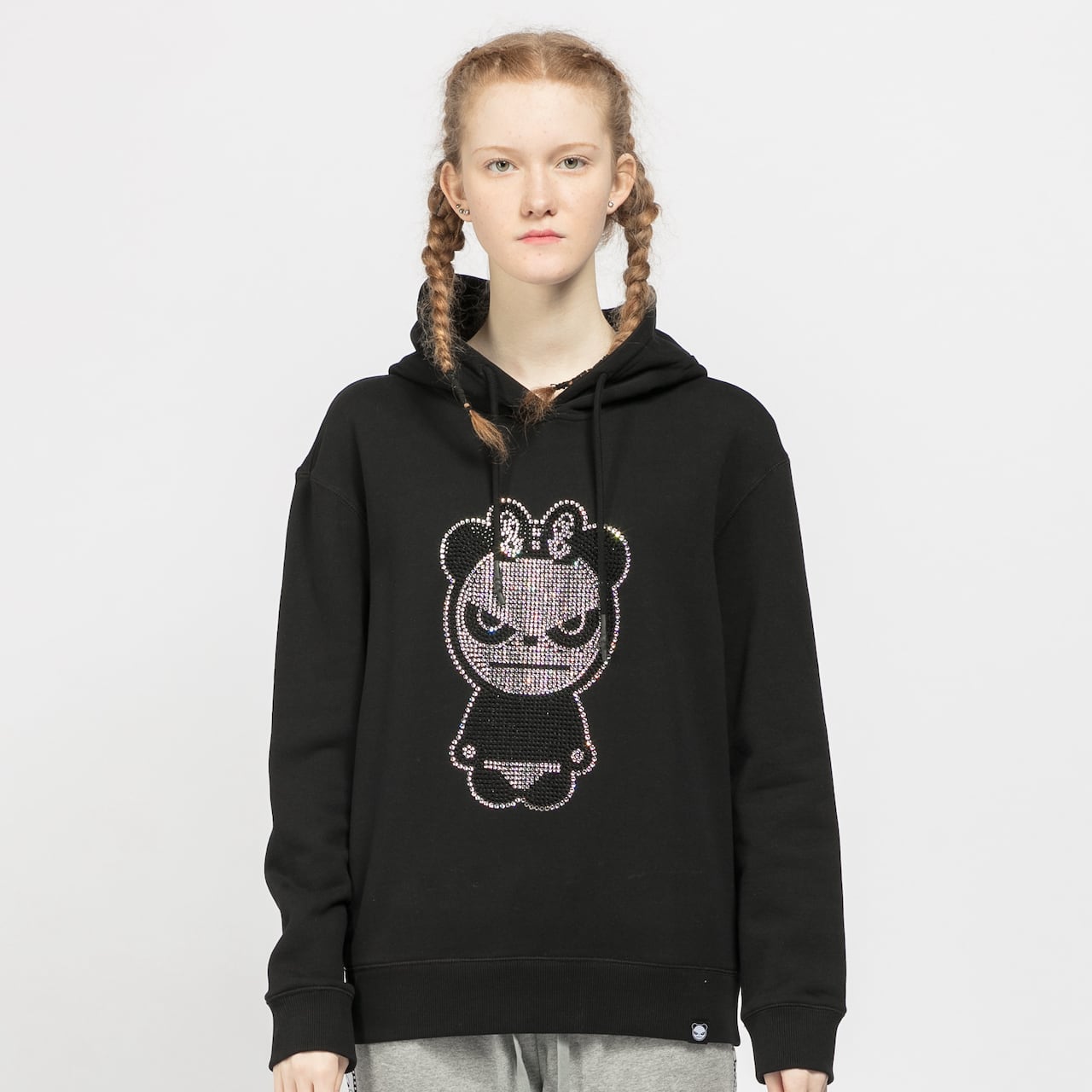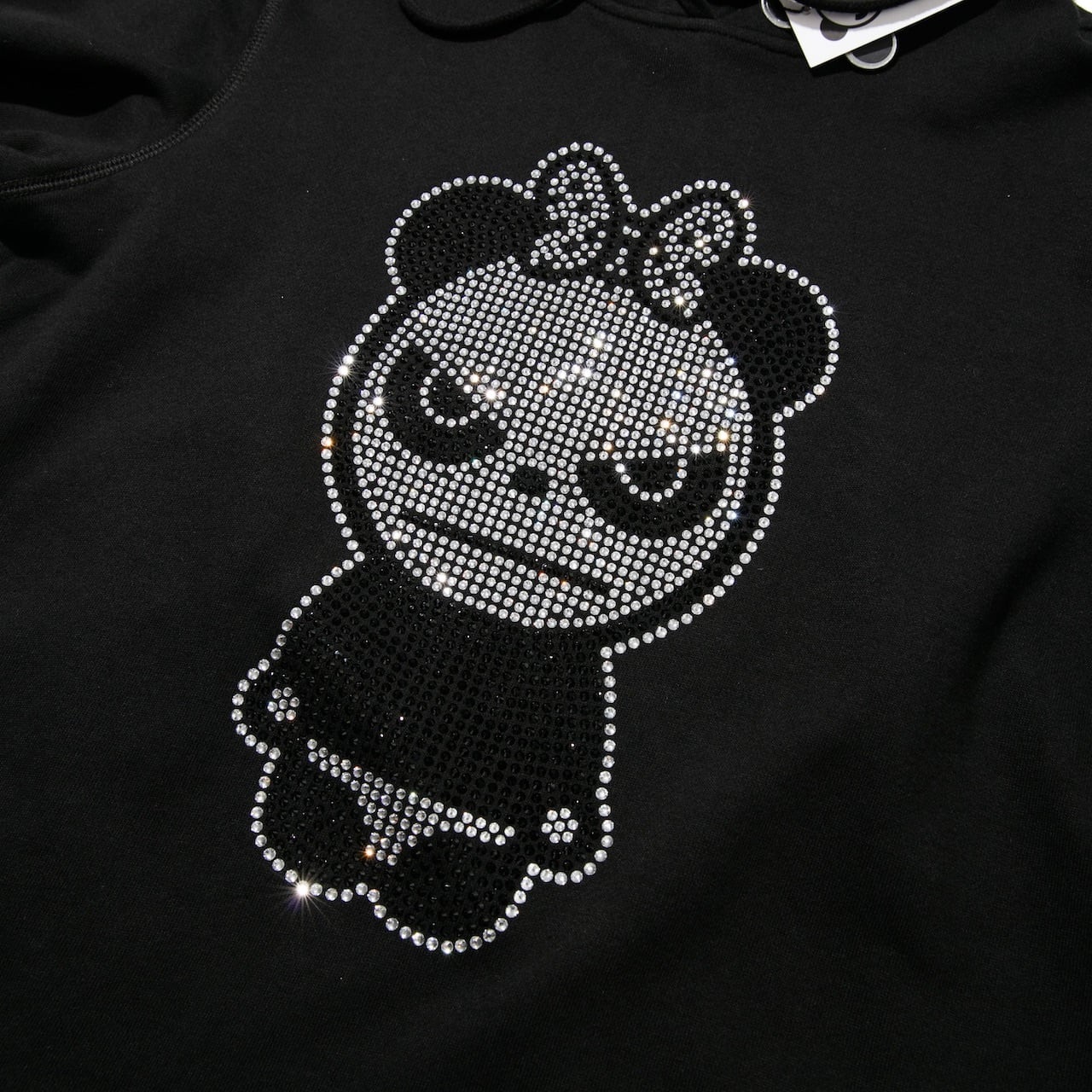 【HIPANDA ハイパンダ】レディース ラインストーン フーディー スウェット WOMEN'S BASIC LOGO RHINESTONE HOODIE SWEAT SHIRT / WHITE・BLACK
