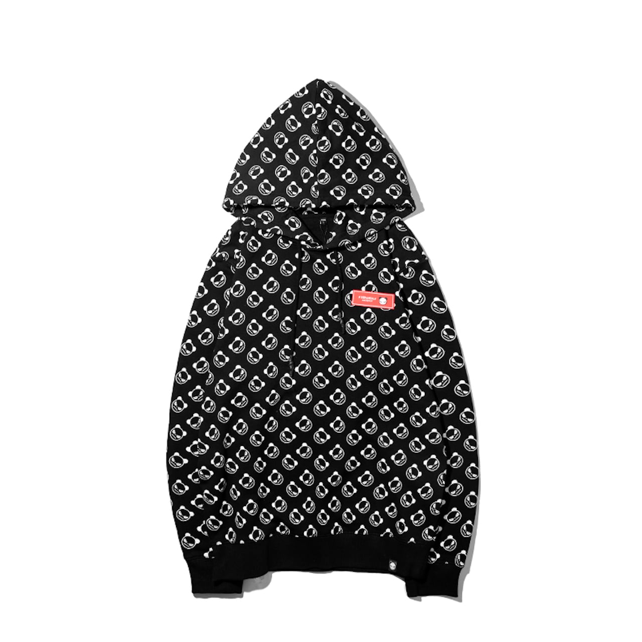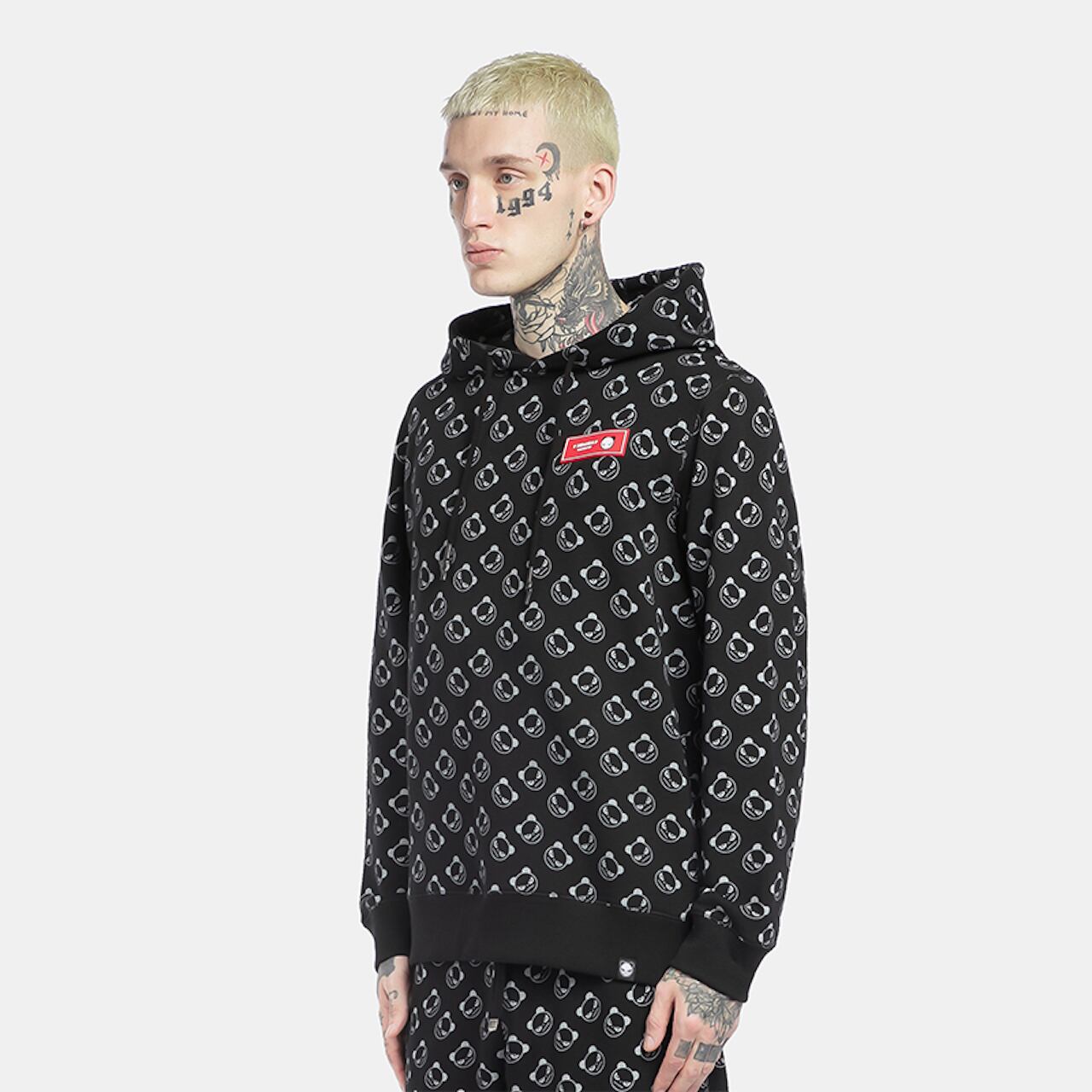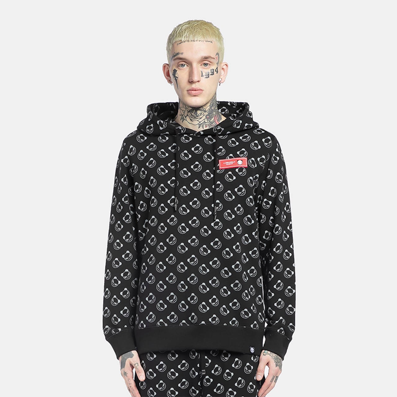 【HIPANDA ハイパンダ】メンズ ロゴオールプリント フーディー スウェット MEN'S LOGO ALL OVER PRINT HOODIE SWEAT SHIRT / BLACK・WHITE