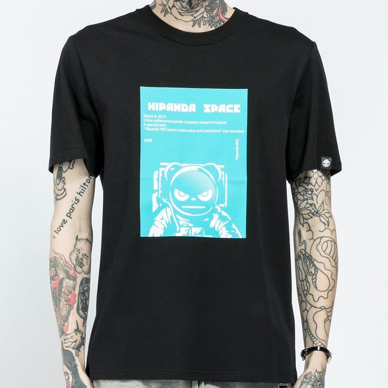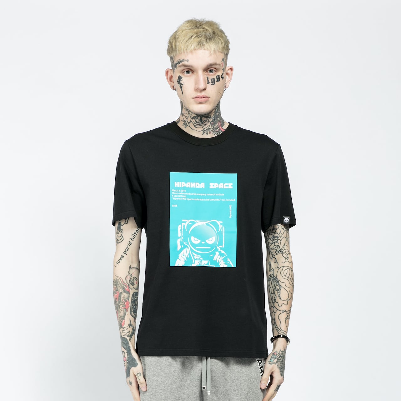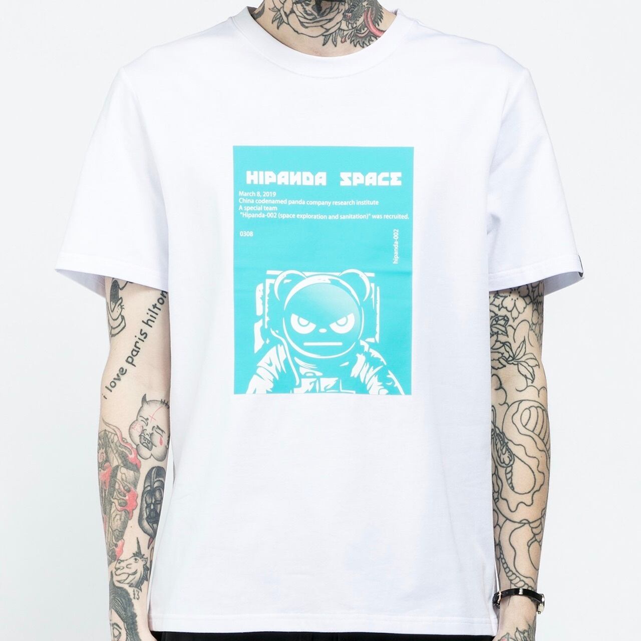 SALE【HIPANDA ハイパンダ】メンズ Tシャツ MEN'S ASTRONAUT LIGHT BLUE PRINT SHORT SLEEVED T-SHIRT / WHITE・BLACK