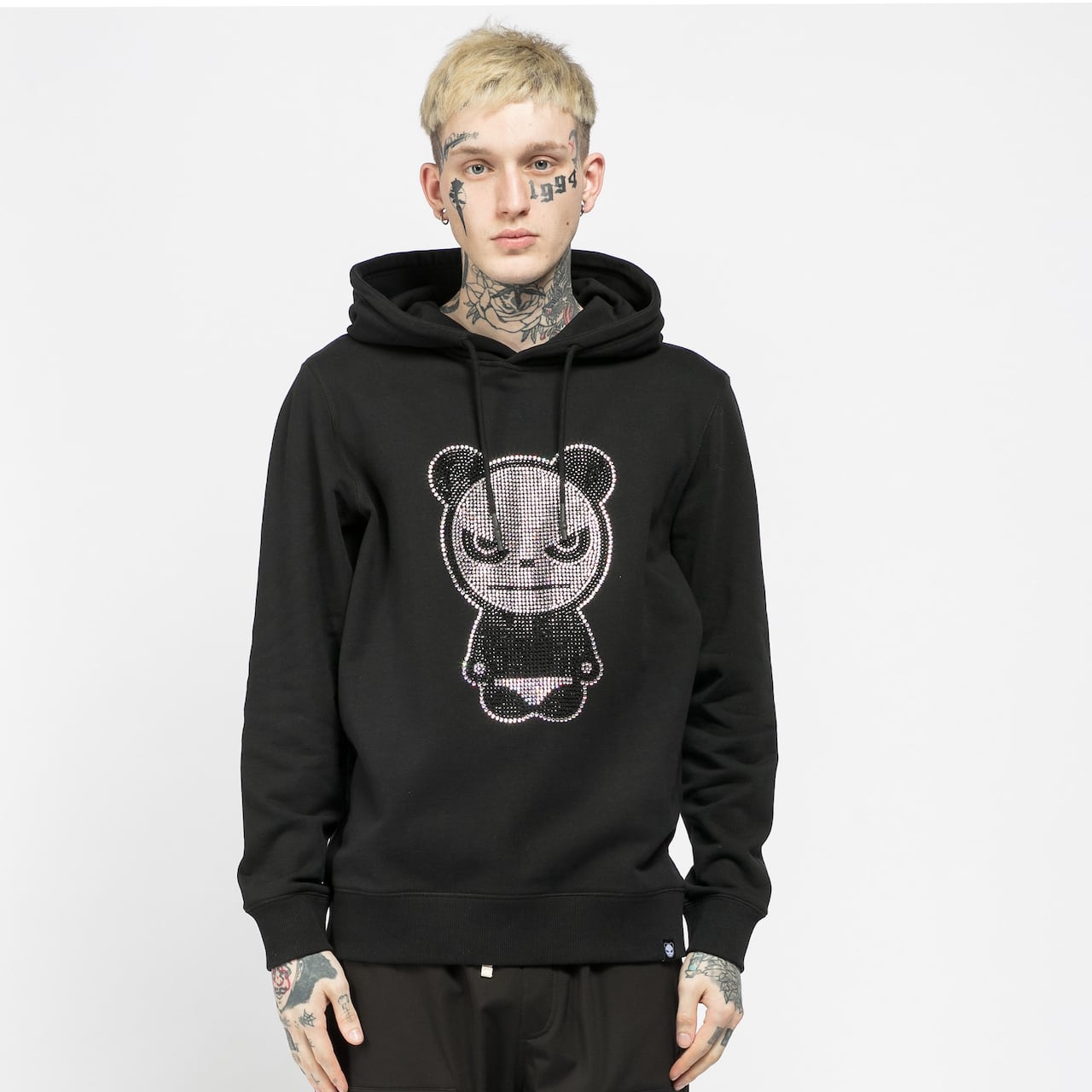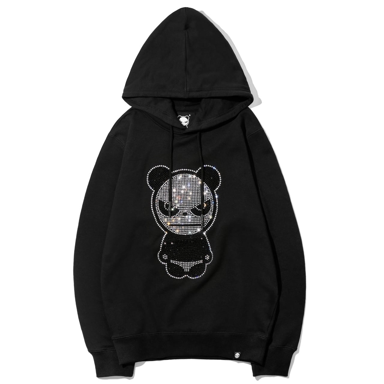 【HIPANDA ハイパンダ】メンズ ラインストーン フーディー スウェット MEN'S RHINESTONE BASIC LOGO HOODIE SWEAT SHIRT / WHITE・BLACK