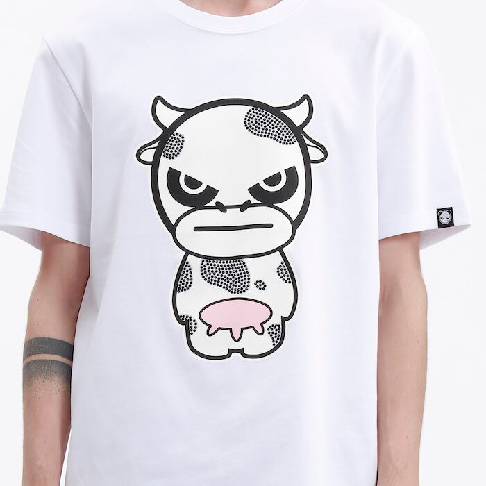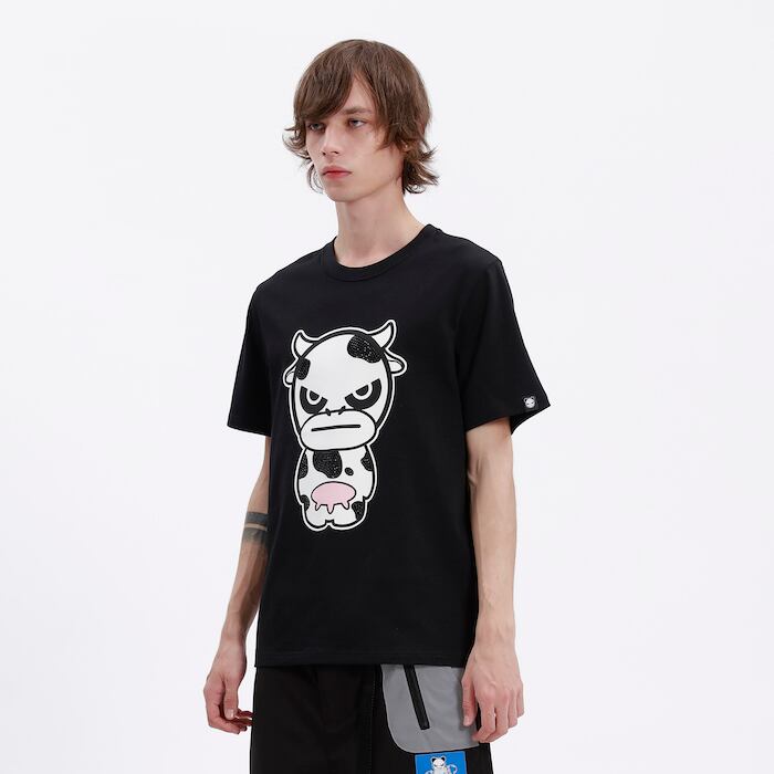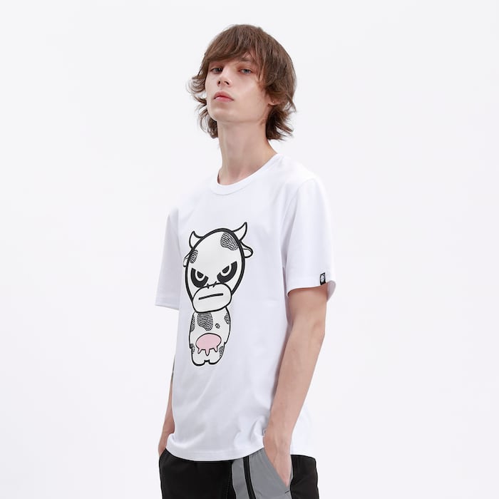SALE【HIPANDA ハイパンダ】メンズ 牛プリント Tシャツ MEN'S Year of the Ox PRINT SHORT SLEEVED T-SHIRT / WHITE・BLACK
