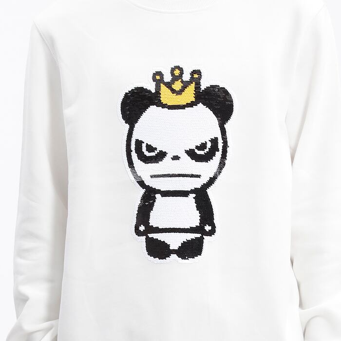 【HIPANDA ハイパンダ】メンズ キングパンダ スパンコール スウェット トレーナー MEN'S KING PANDA SEQUINS CREW NECK SWEAT SHIRT / WHITE・BLACK