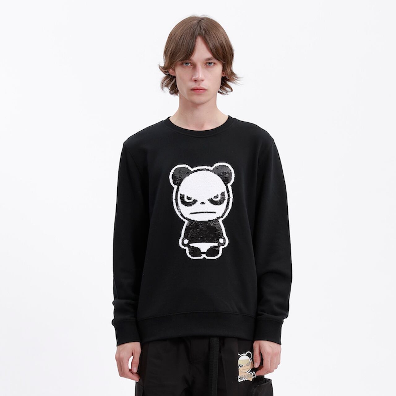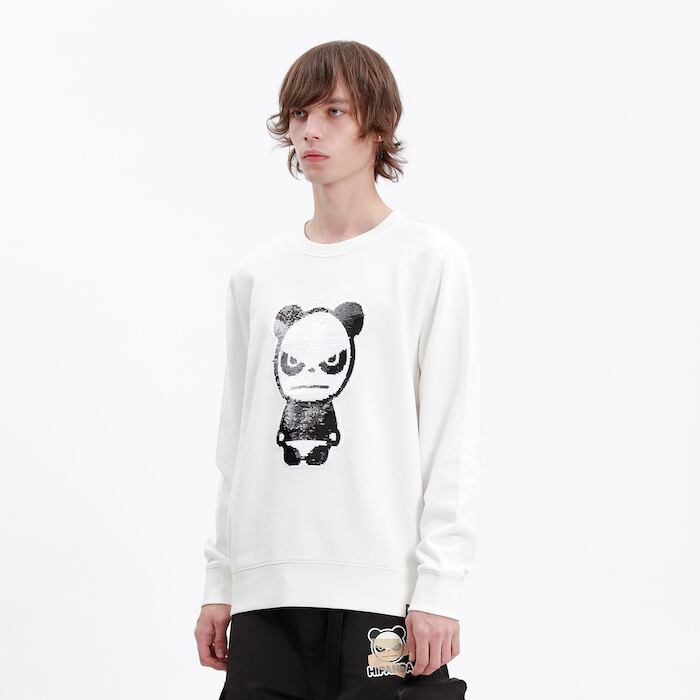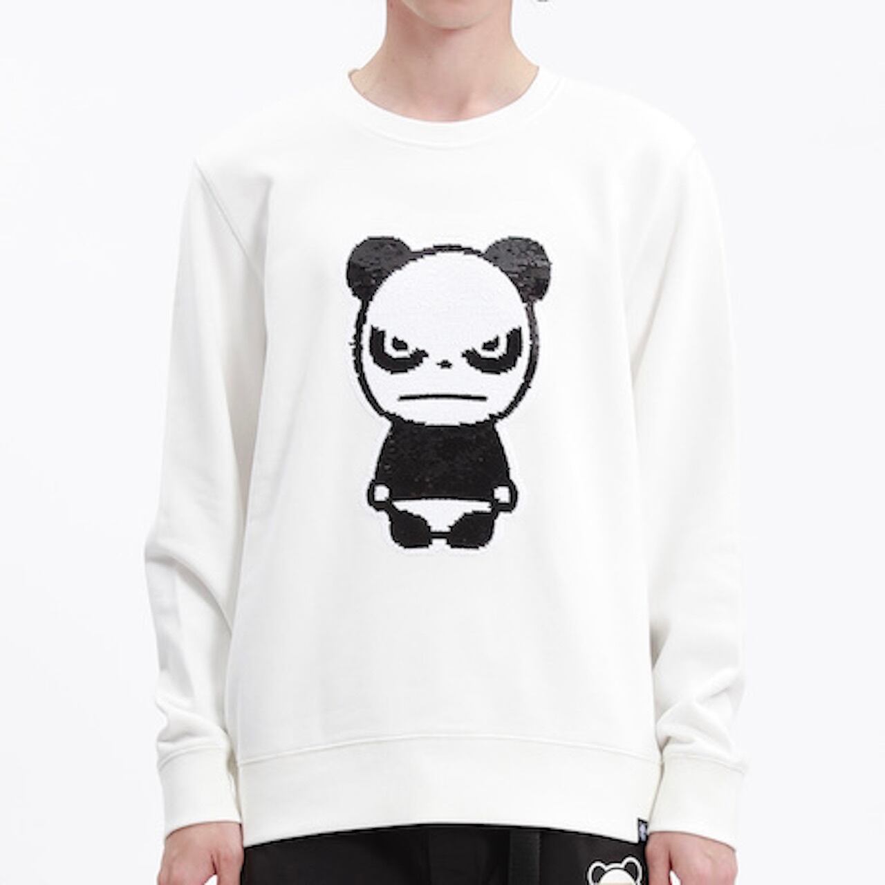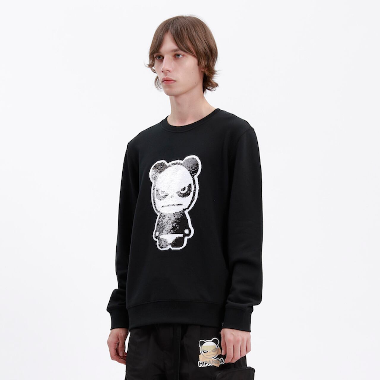 【HIPANDA ハイパンダ】メンズ スパンコール ロゴ クルーネック スウェット トレーナー MEN'S SEQUINS BASIC HIPANDA LOGO CREW NECK SWEAT SHIRT / WHITE・BLACK