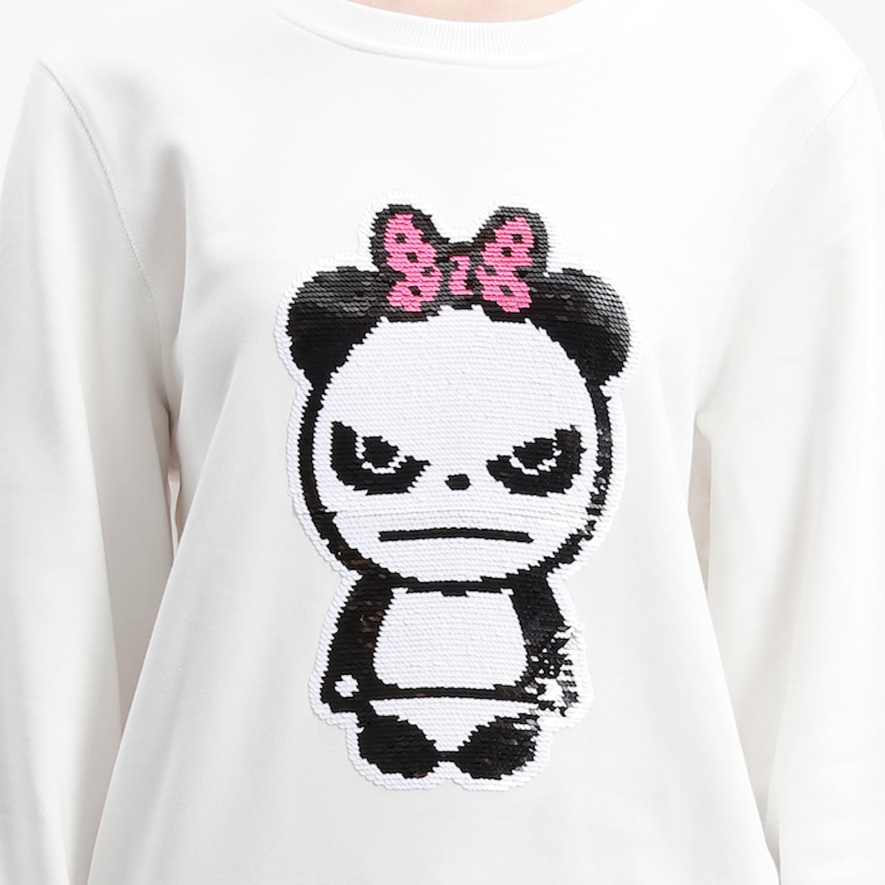【HIPANDA ハイパンダ】レディース スパンコール クルーネック スウェット トレーナー WOMEN'S SEQUINS CREW NECK SWEAT SHIRT / WHITE・BLACK