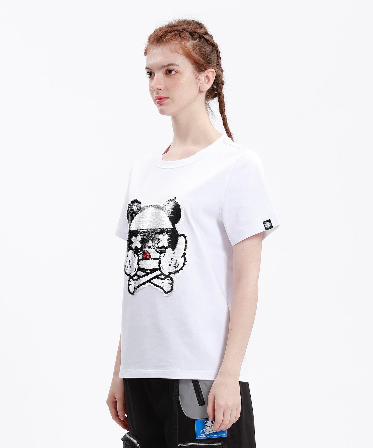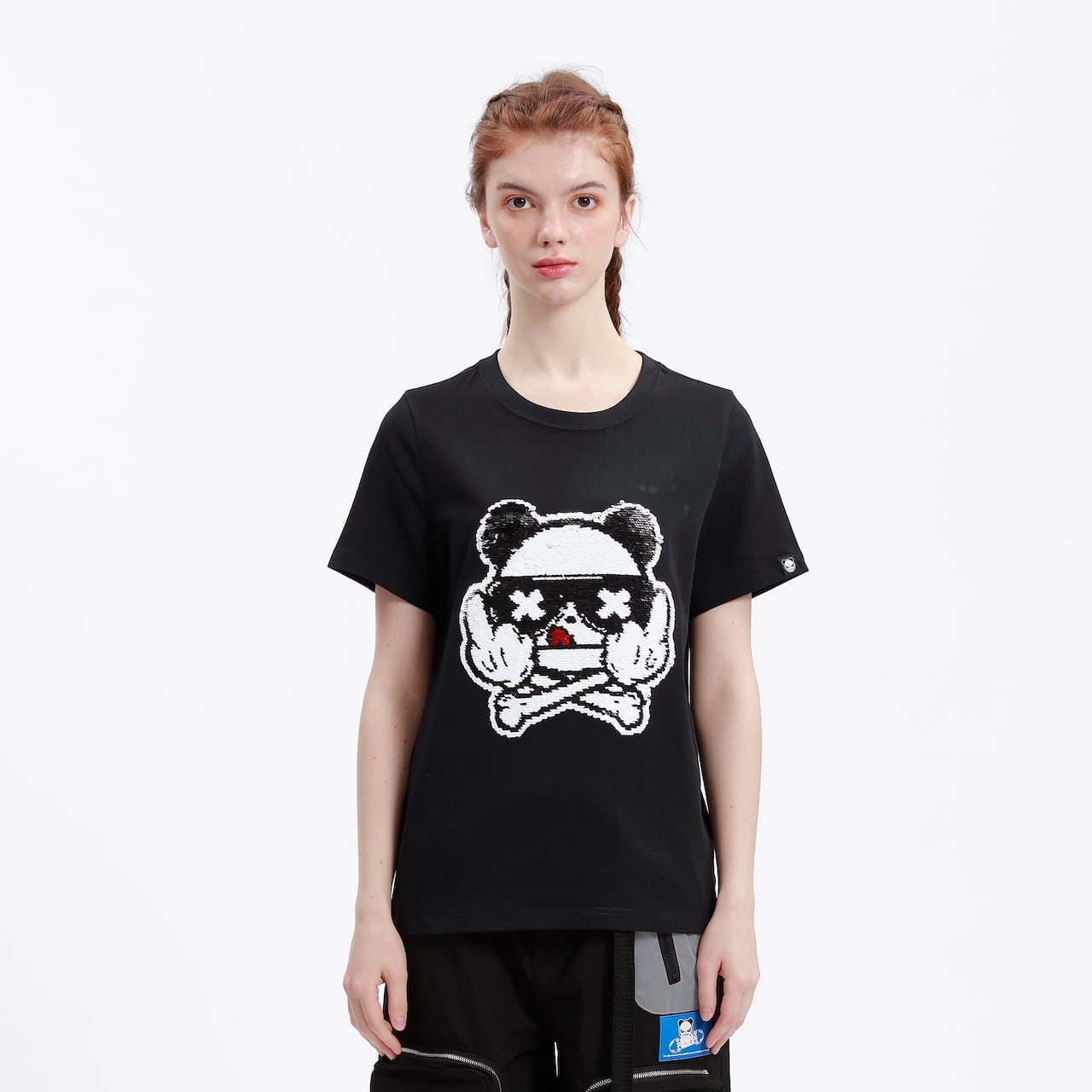 【HIPANDA ハイパンダ】レディース スパンコール パンダ Tシャツ WOMEN'S SEQUINS PANDA SHORT SLEEVED T-SHIRT / WHITE・BLACK
