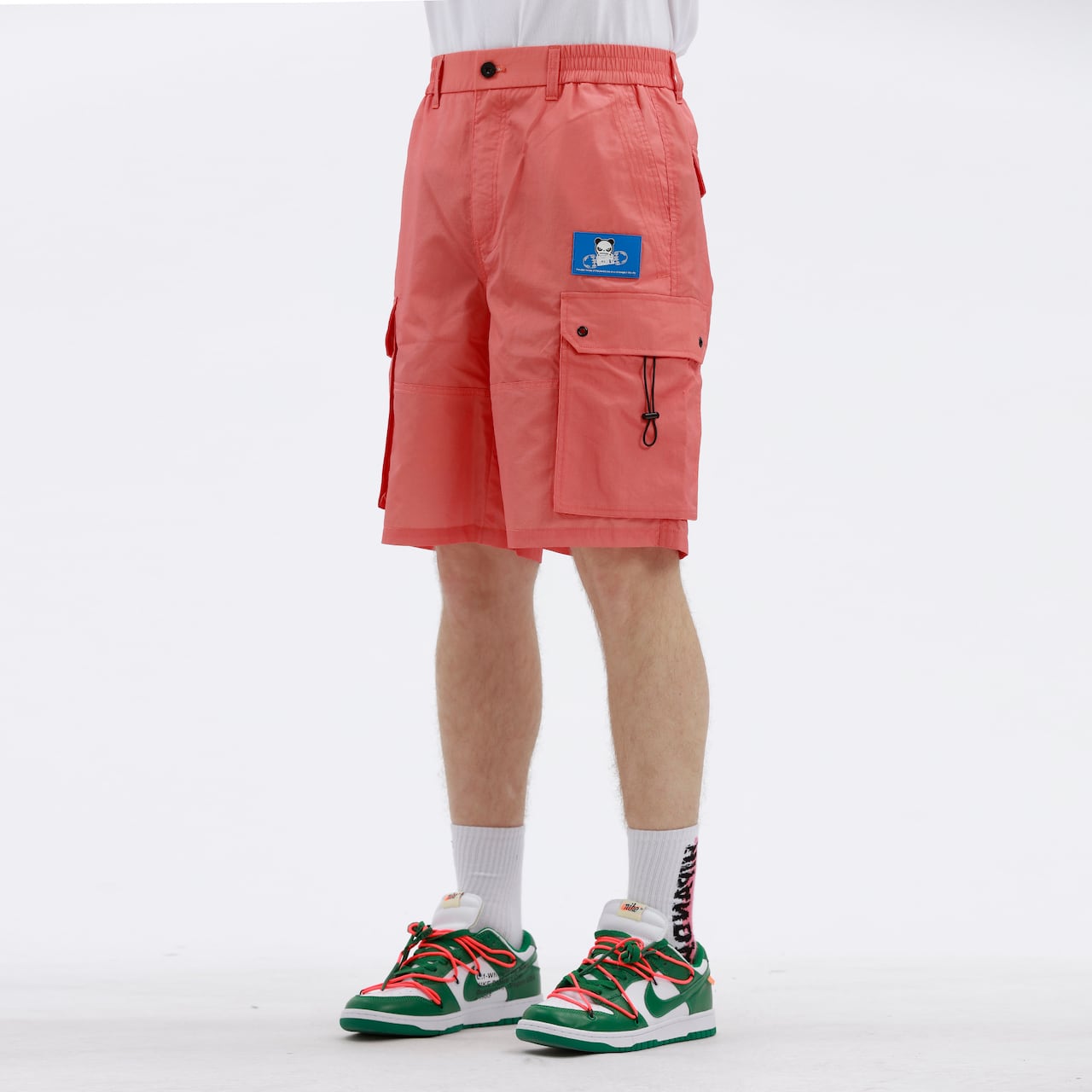 【HIPANDA ハイパンダ】メンズ ショート カーゴパンツ MEN'S SHORT CARGO PANTS / ORANGE・BLACK