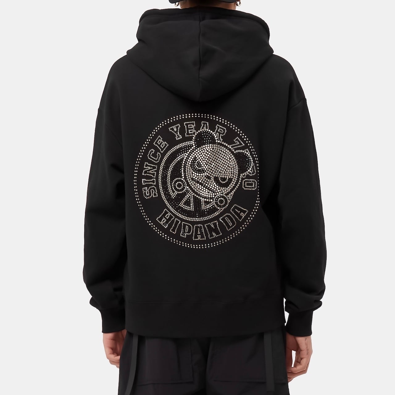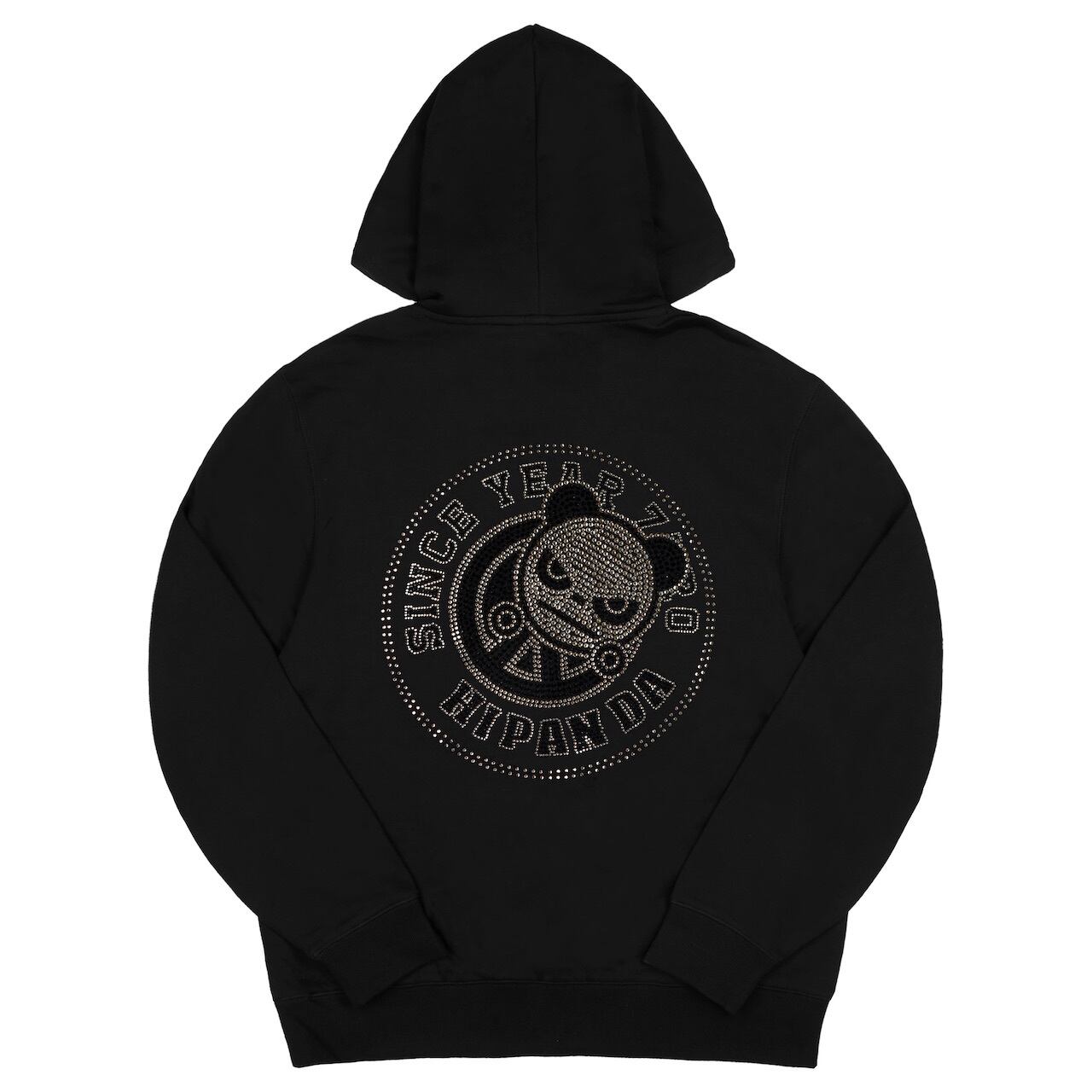 【HIPANDA ハイパンダ】メンズ ラインストーン フーディー スウェット MEN'S GOLD EMBLEM RHINESTONE HOODIE SWEAT SHIRT / BLACK
