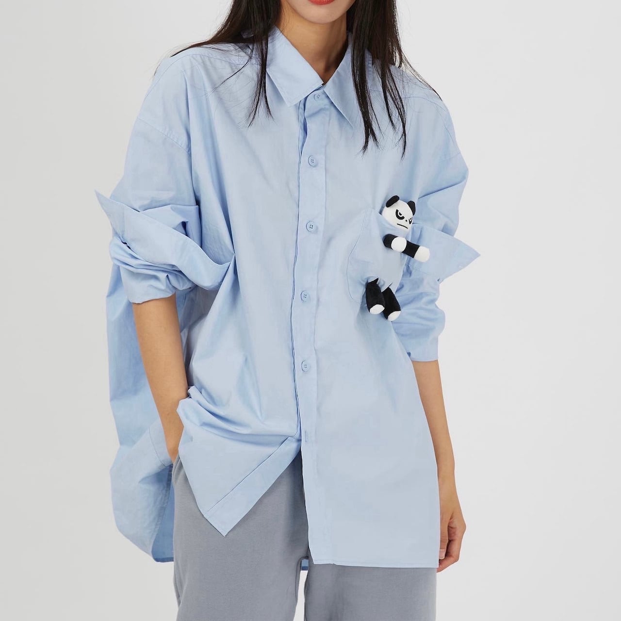 【HIPANDA ハイパンダ】男女兼用 シャツ UNISEX HIPANDA IN POCKET SHIRT / ORANGE・BLACK・LIGHT BLUE