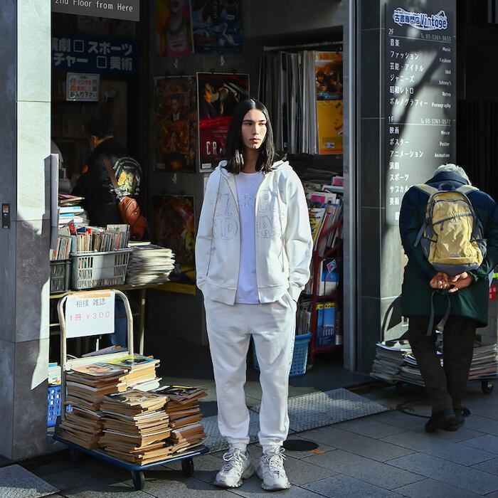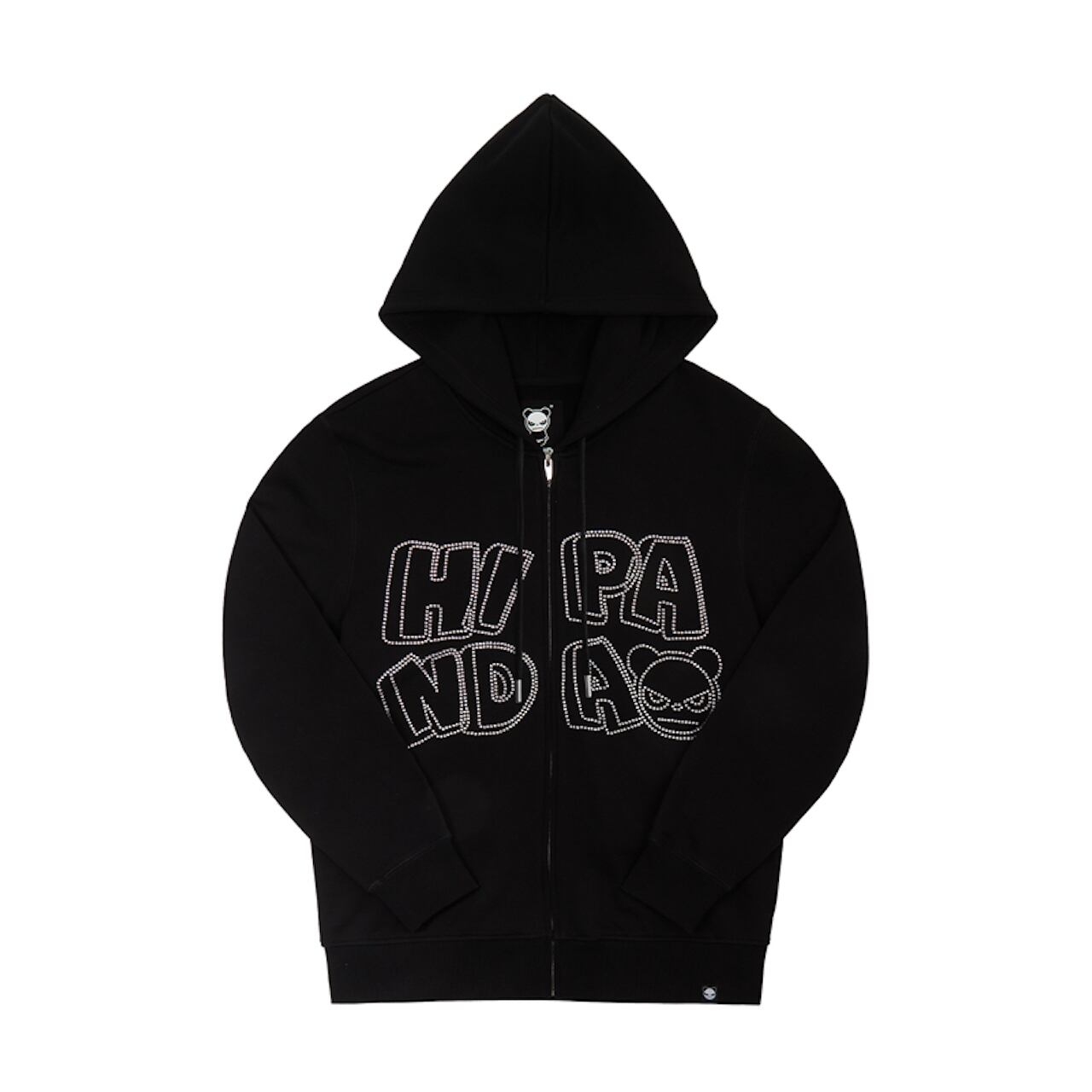 【HIPANDA ハイパンダ】メンズ ラインストーン ジップアップ フーディー スウェット MEN'S ZIP-UP HOODIE SWEAT SHIRT / WHITE・BLACK