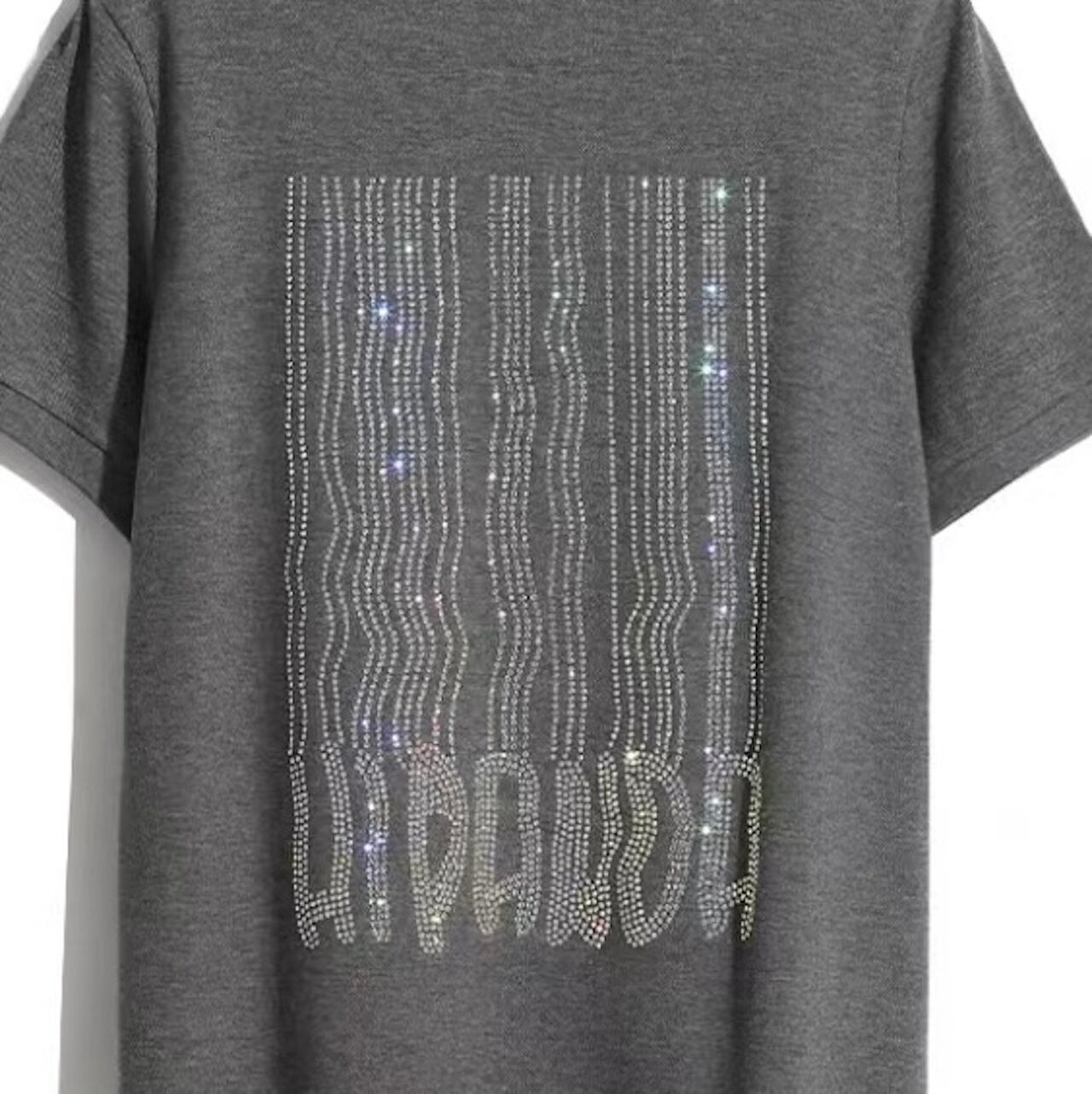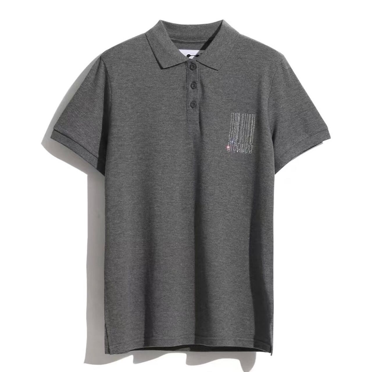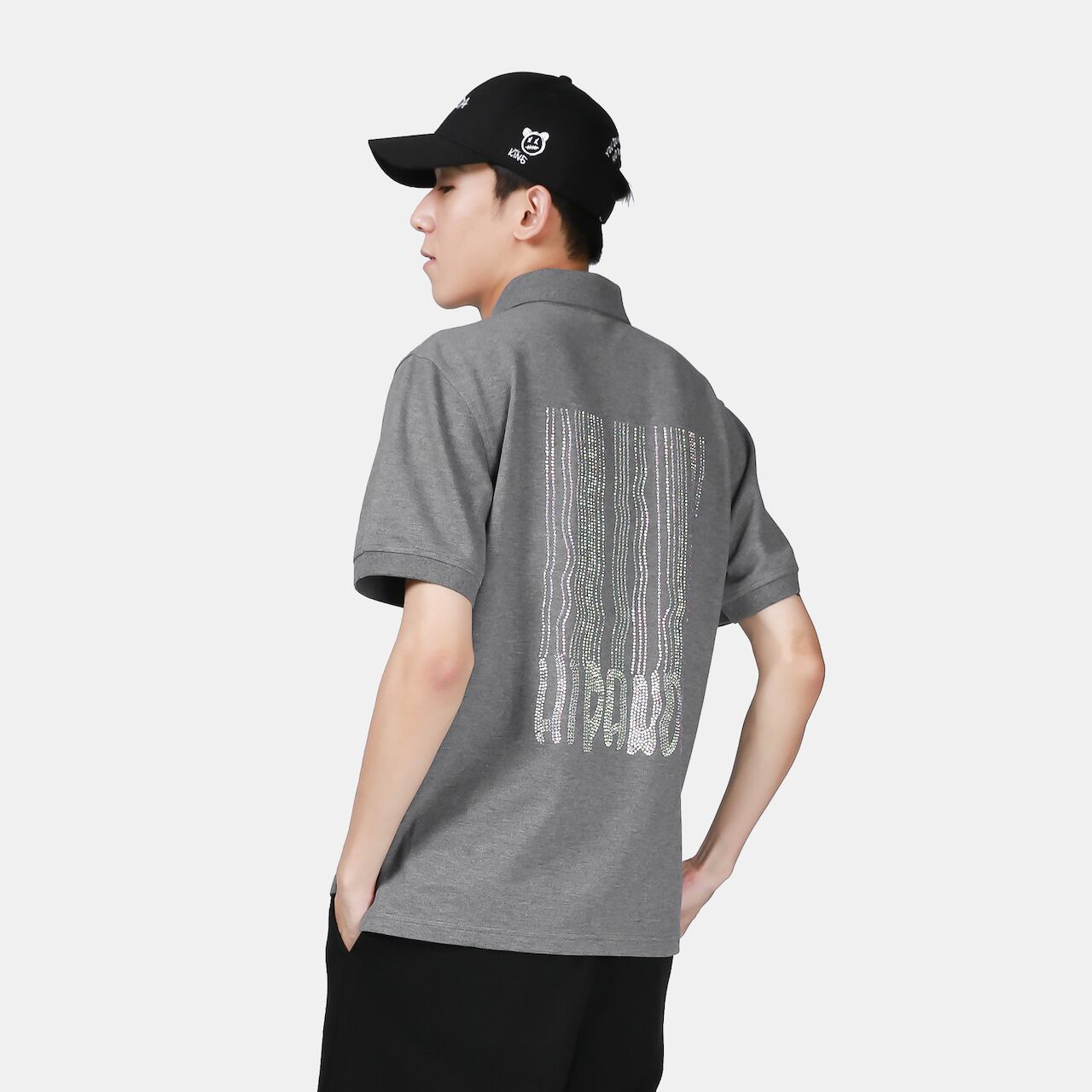 【HIPANDA ハイパンダ】メンズ ラインストーン ポロシャツ MEN'S RHINESTONE POLO SHIRT / GRAY