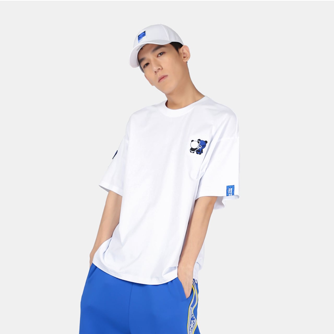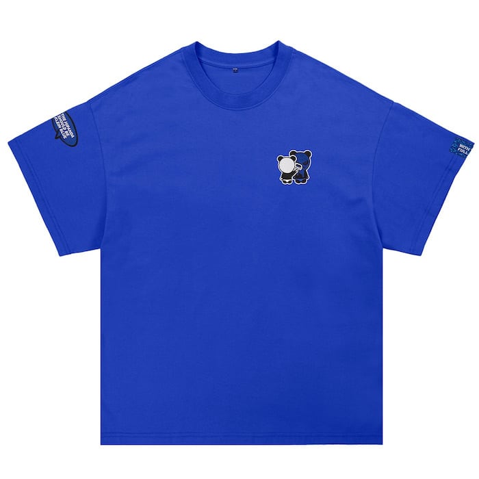 【HIPANDA ハイパンダ】メンズ ブルーパンダ 刺繍 ワンポイント⚠ビッグシルエット⚠ Tシャツ MEN'S BRUE PANDA EMBROIDERY ONE POINT BIG SILHOUETTE SHORT SLEEVED T-SHIRT / WHITE・BLACK・BLUE