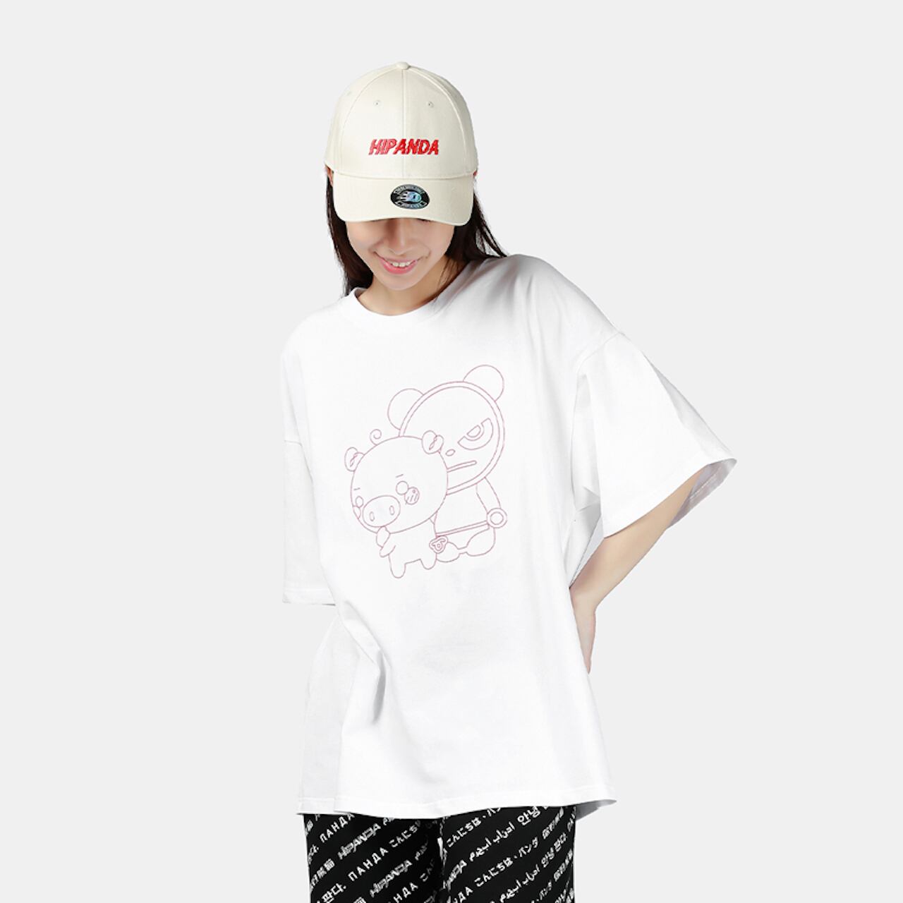 SALE 【HIPANDA ハイパンダ】男女兼用 ビッグシルエット 十二支 亥年 刺繍 Tシャツ UNISEX BIG SILHOUETTE PIG YEAR EMBROIDERY SHORT SLEEVED T-SHIRT / WHITE