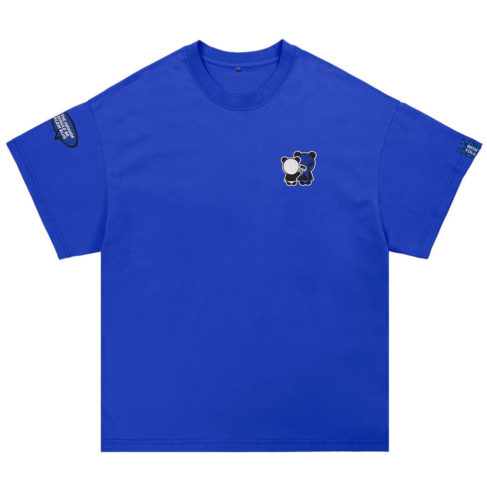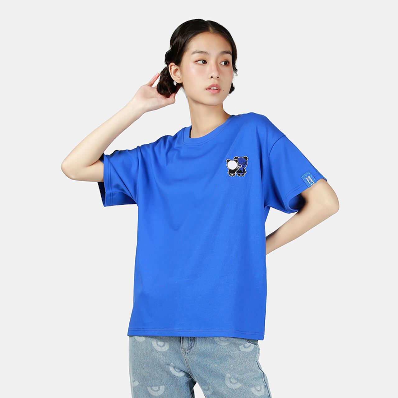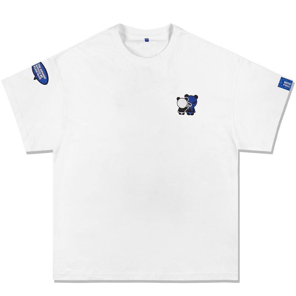 【HIPANDA ハイパンダ】レディース ブルーパンダ 刺繍 ワンポイント ⚠ビッグシルエット⚠ Tシャツ WOMEN'S BLUE PANDA EMBROIDERY ONE POINT BIG SILHOUETTE SHORT SLEEVED T-SHIRT / WHITE・BLACK・BLUE