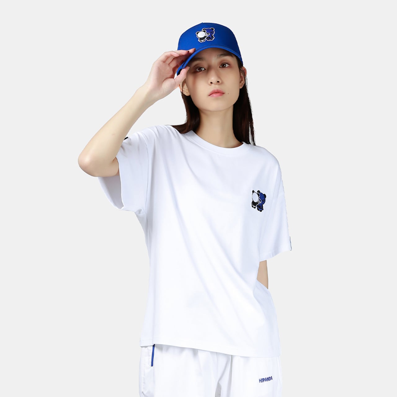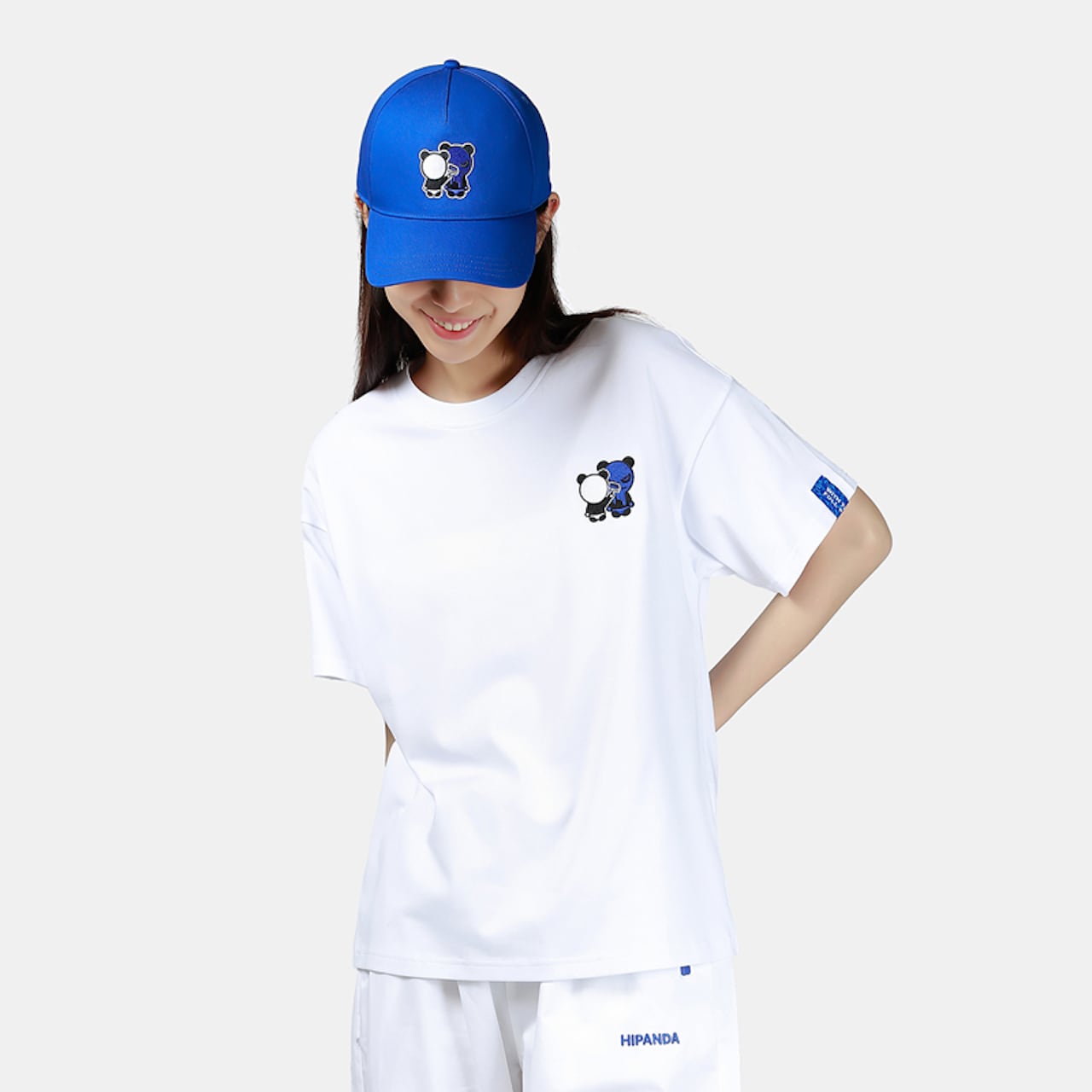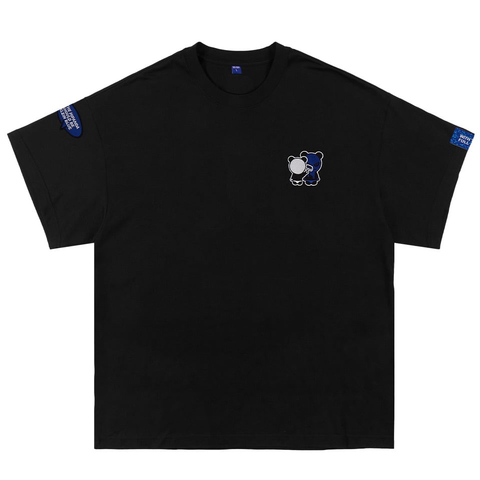 【HIPANDA ハイパンダ】レディース ブルーパンダ 刺繍 ワンポイント ⚠ビッグシルエット⚠ Tシャツ WOMEN'S BLUE PANDA EMBROIDERY ONE POINT BIG SILHOUETTE SHORT SLEEVED T-SHIRT / WHITE・BLACK・BLUE