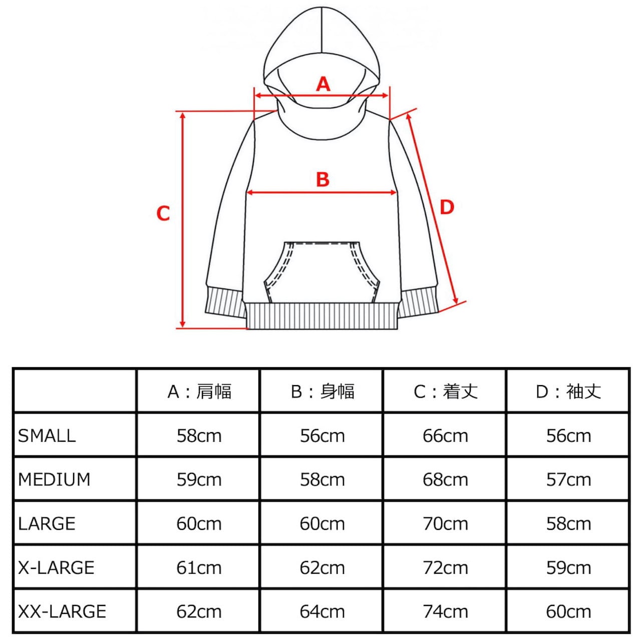 【サイズ案内 / SIZE】メンズ / MEN'S : S / M / L / XL / XXL