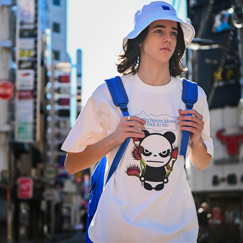 SALE 【HIPANDA ハイパンダ】メンズ ハエトリグサ プリント Tシャツ MEN'S PRINT T-SHIRT / WHITE