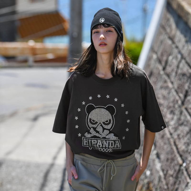 【HIPANDA ハイパンダ】 男女兼用 ラインストーン Tシャツ UNISEX OUTDOOR PEAK RHINESTONE SHORT T-SHIRT / WHITE・ BLACK