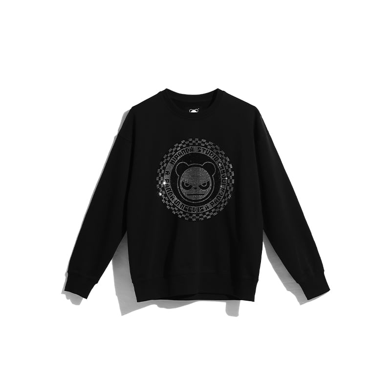 【HIPANDA ハイパンダ】男女兼用 クルーネック ラインストーン スウェット トレーナー UNISEX CREW NECK RHINESTONE SWEAT SHIRT / BLACK・WHITE