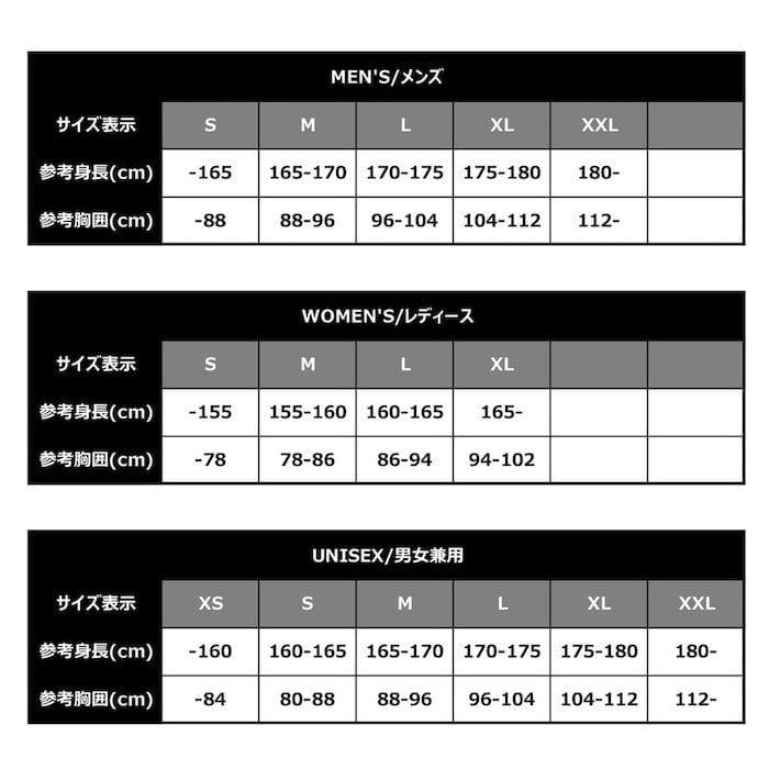 【サイズ案内 / SIZE】男女兼用 / UNISEX : S / M / L / XL / XXL