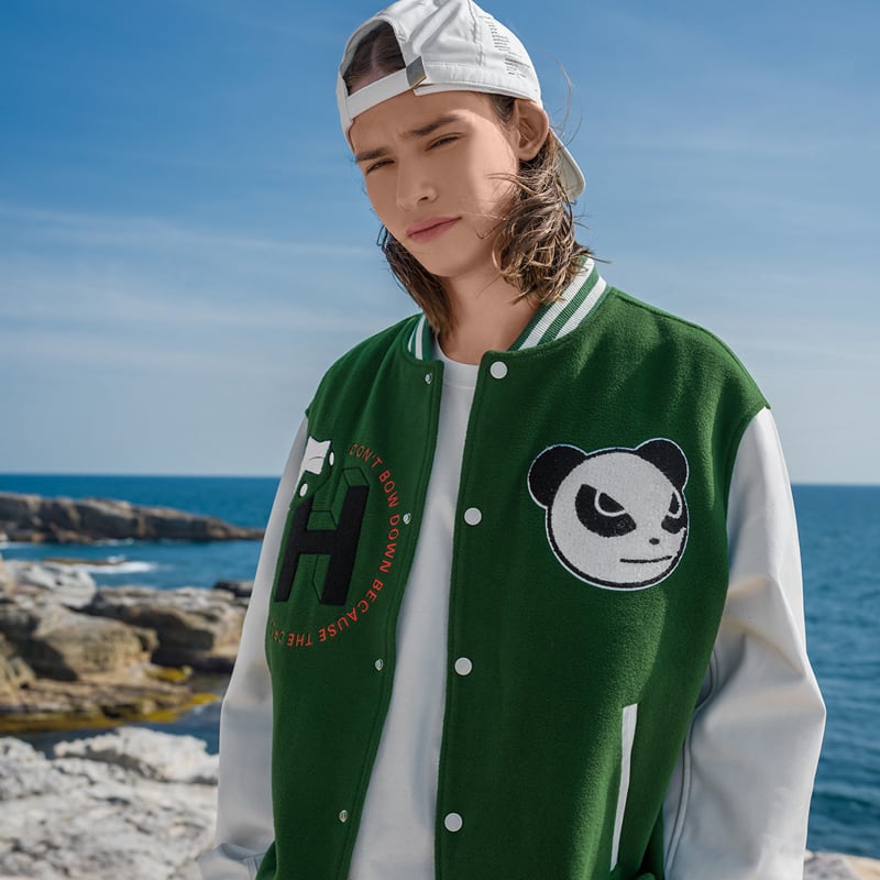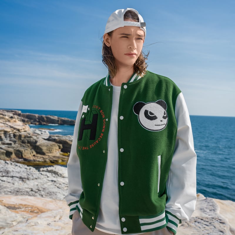 SALE【HIPANDA ハイパンダ】男女兼用 ウール スタジャン UNISEX BASEBALL JACKET / GREEN