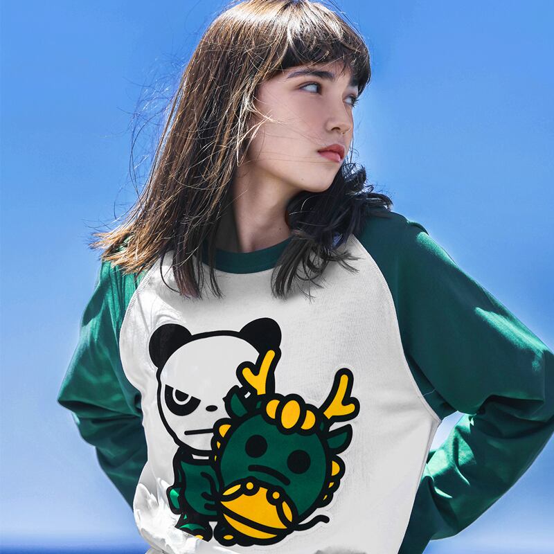 【HIPANDA ハイパンダ】男女兼用 辰年 プリント ロンT UNISEX YEAR OF THE DRAGON PRINT LONG-SLEEVED T-SHIRT / BLACK・GREEN