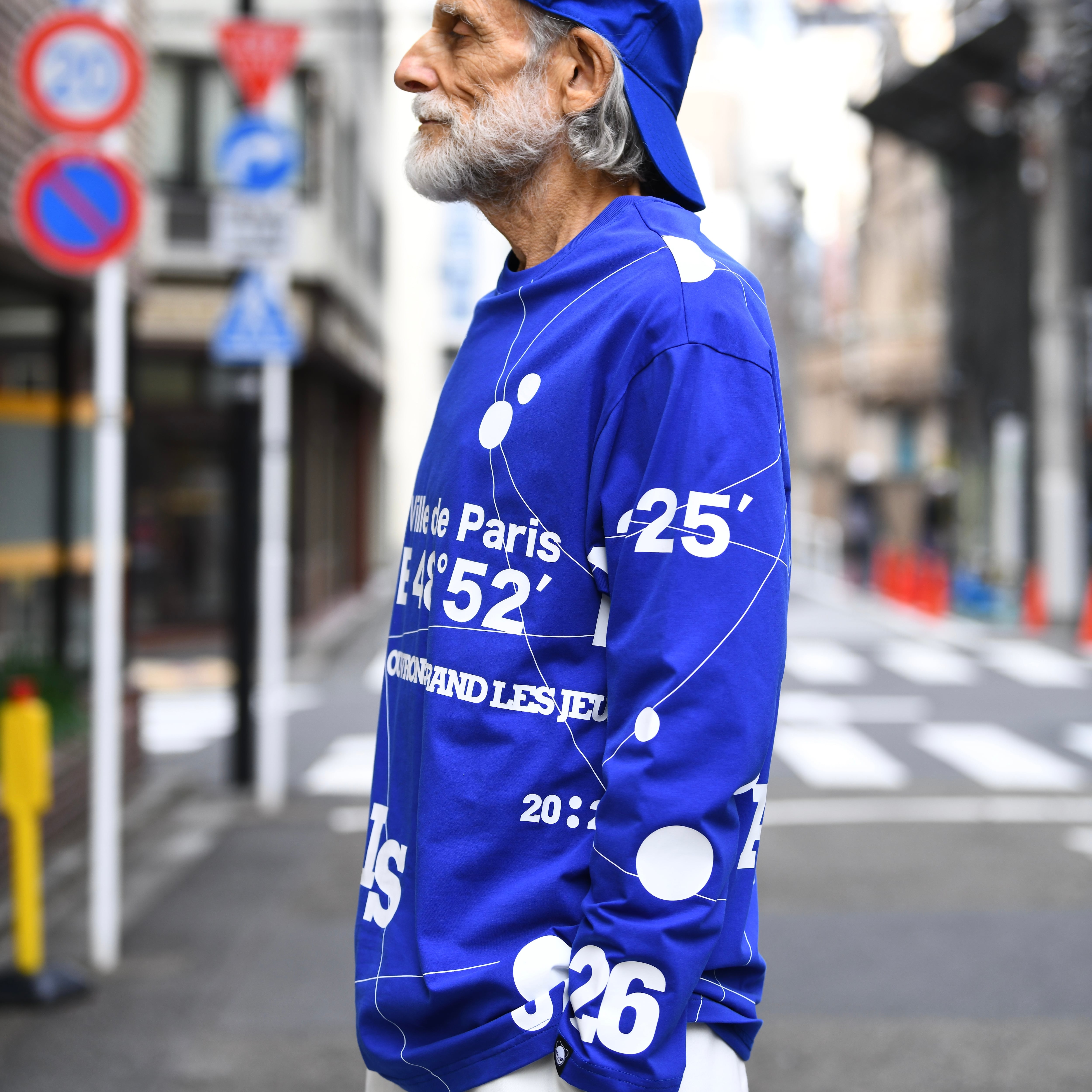 【HIPANDA ハイパンダ】男女兼用 プリント ロンT UNISEX PRINT LONG-SLEEVED T-SHIRT / BLUE・WHITE