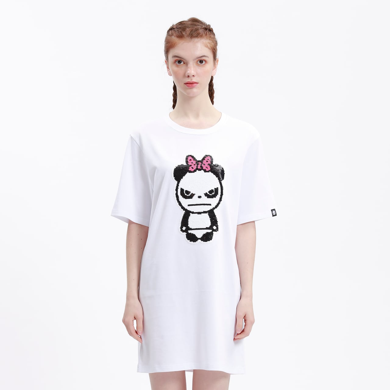 【HIPANDA ハイパンダ】レディース スパンコール Tシャツ ワンピース WOMEN'S SEQUINS SHORT SLEEVED LONG T-SHIRT / WHITE・BLACK