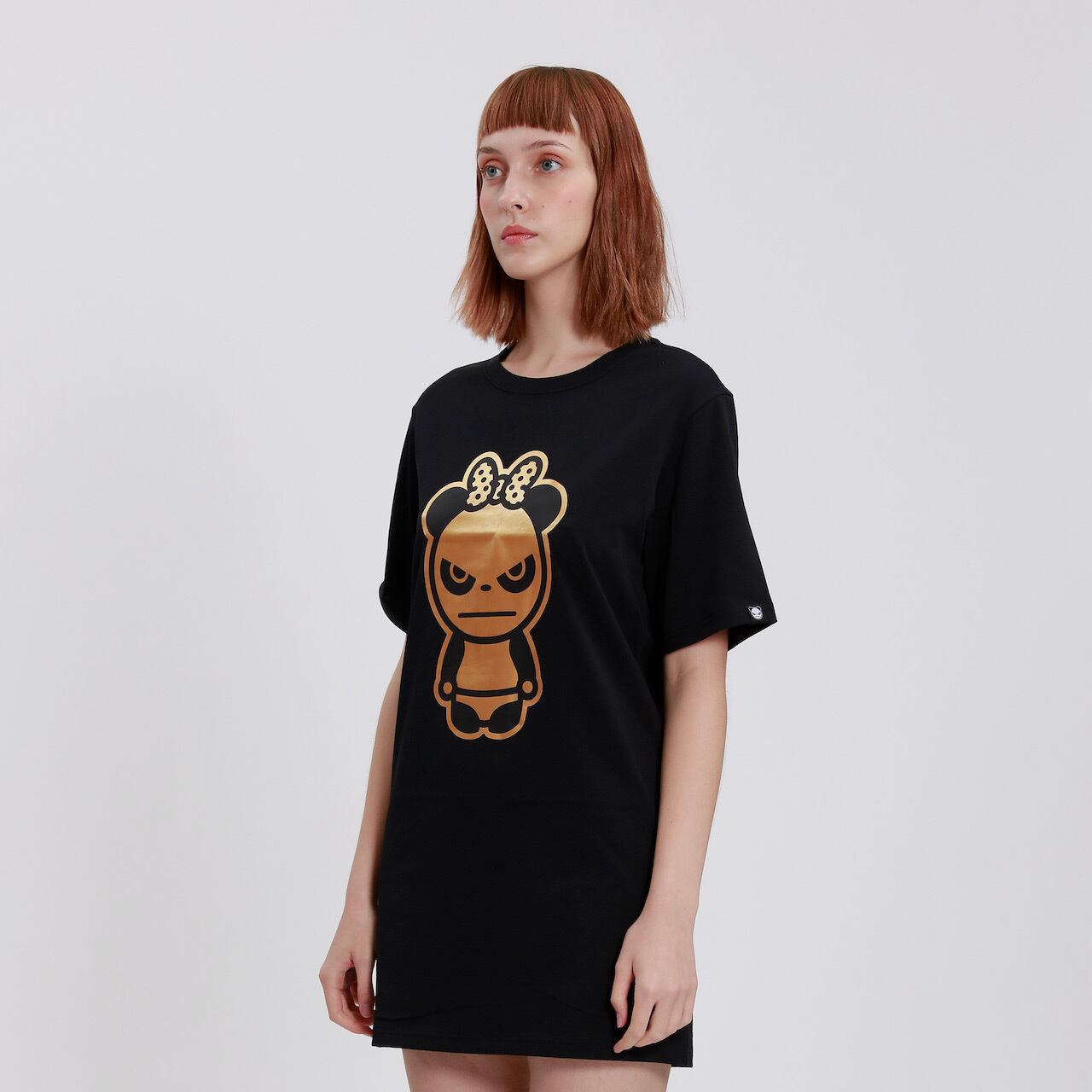 【HIPANDA ハイパンダ】レディース ゴールドプリント Tシャツ ワンピース WOMEN'S GOLD PRINT SHORT SLEEVED LONG T-SHIRT / BLACK