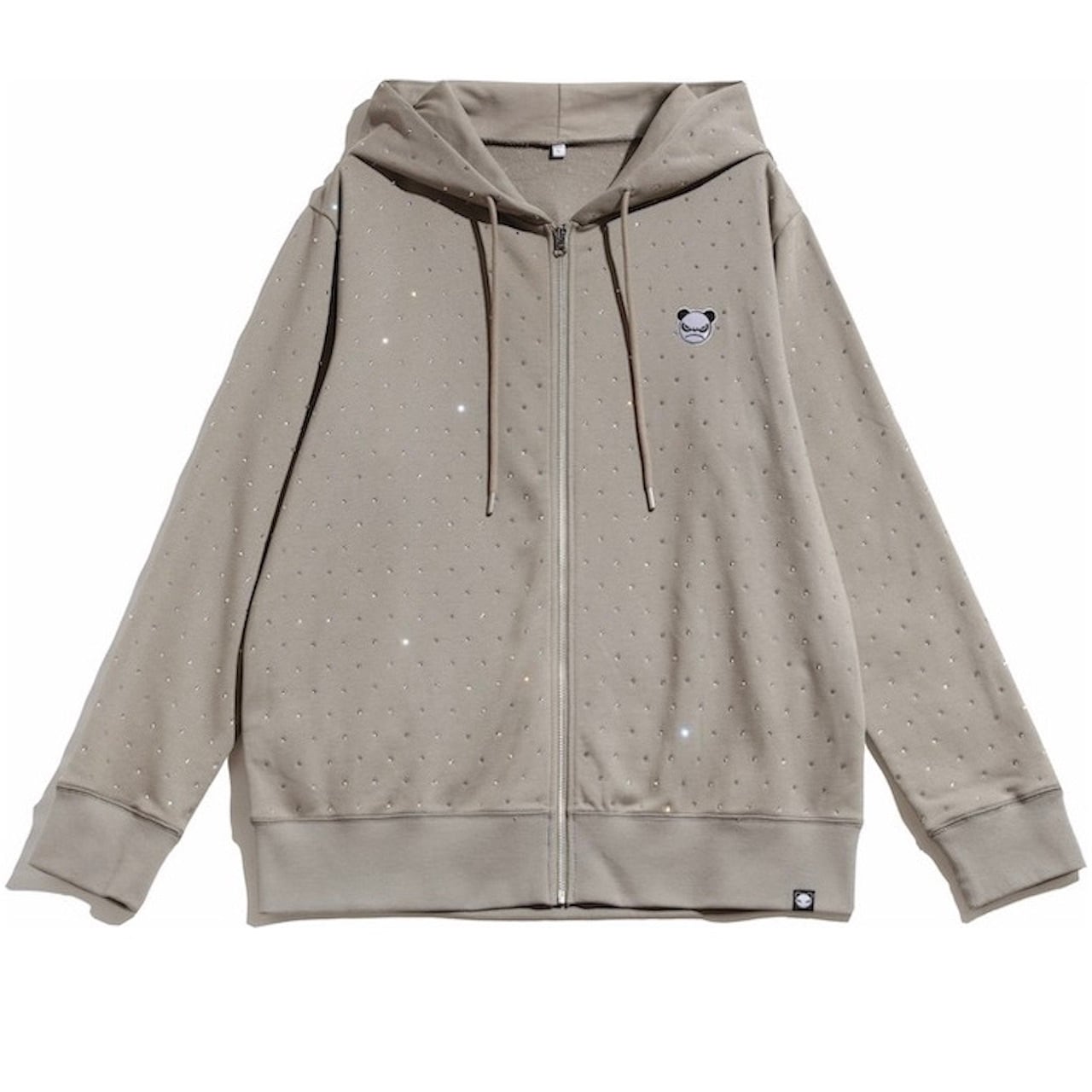 【HIPANDA ハイパンダ】男女兼用 ラインストーン フーディー スウェット UNISEX RHINESTONE HOODIE SWEAT SHIRT / BLACK・BEIGE