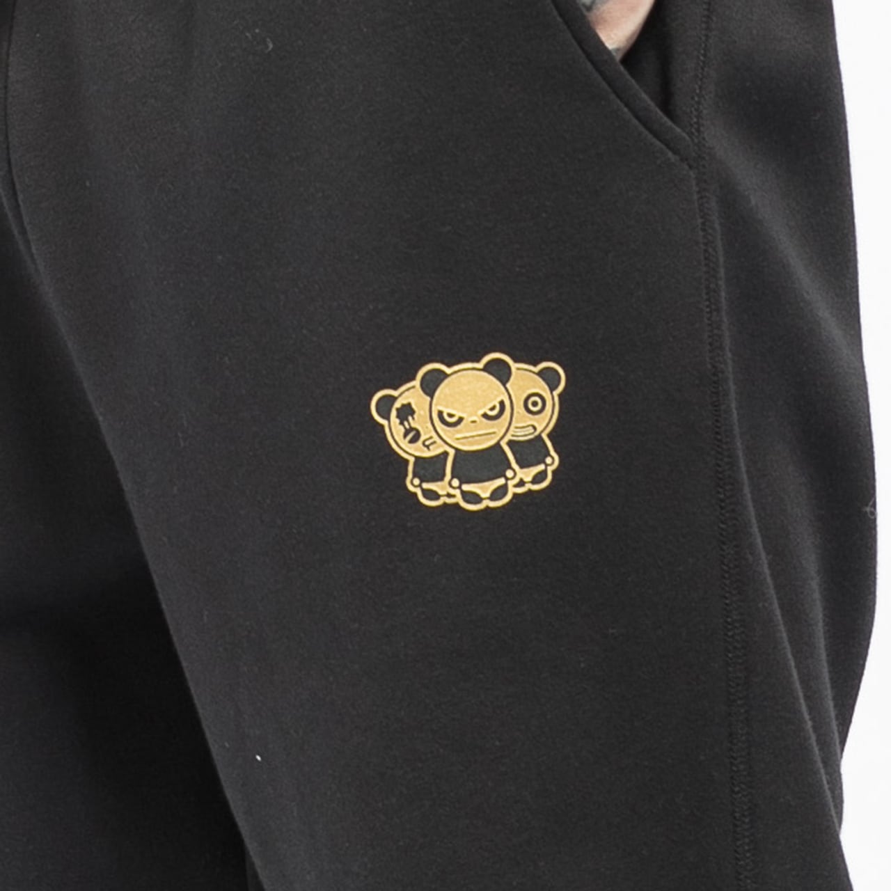 【HIPANDA ハイパンダ】メンズ パンダ3兄弟 ゴールド ワンポイント スウェット パンツ MEN’S HIPANDA TRIO LOGO GOLD ONE POINT SWEAT PANTS / BLACK