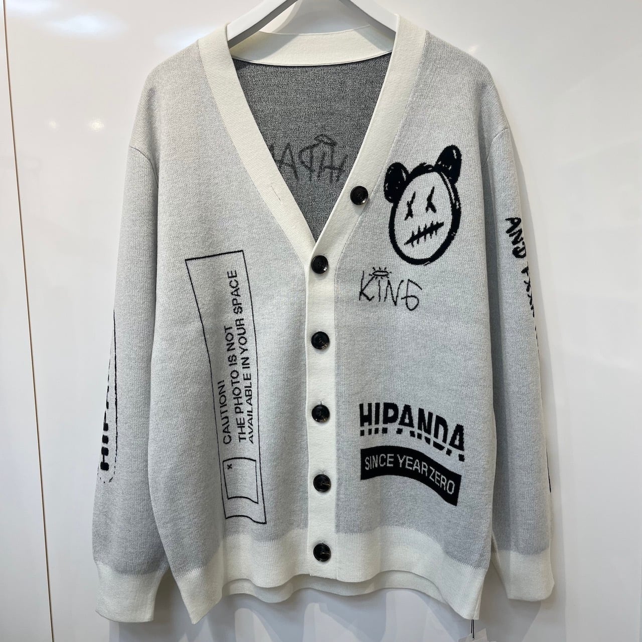 【HIPANDA ハイパンダ】男女兼用 ニットカーディガン UNISEX KNIT CARDIGAN / WHITE・BLACK